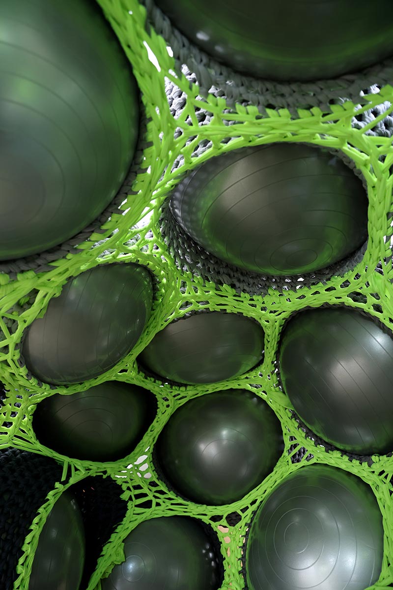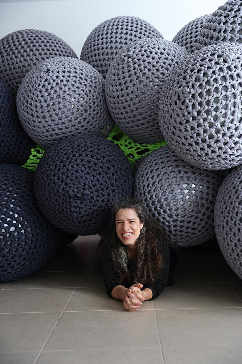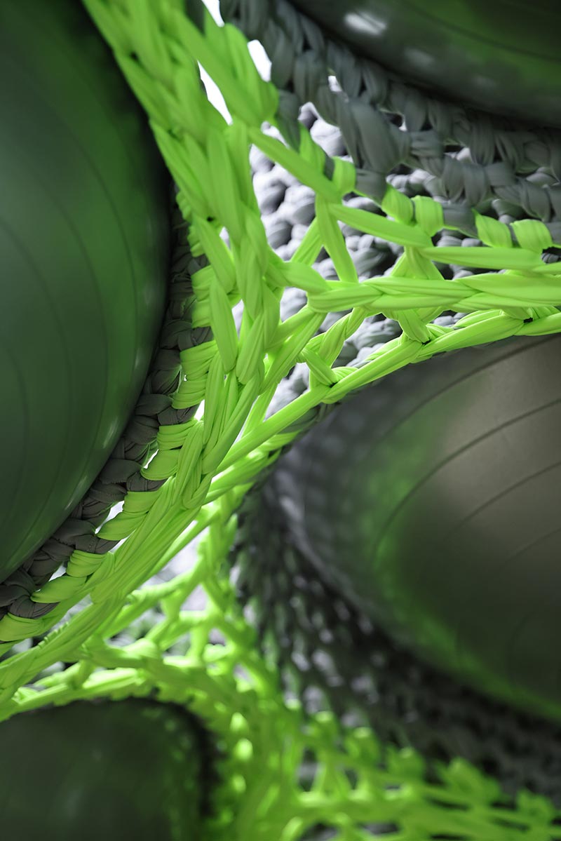לולאה על גבי לולאה יצרה תמר ניקס מבנה מותאם־חלל, כשהטקסטיל מכתיב את הקונסטרוקציה עצמה, ו־50 כדורים רכים משמשים לתמיכה, ומיצרים צורניות מורפולוגית שמאזכרת חלקיקים אורגניים בטבע ובגוף האדם. החזות המולקולרית – שכמו מתרגמת את תאי הגוף לקנה מידה אדריכלי – והמתח שנוצר במפגש בין הגמישות של החומר ובין המבניות התלת־ממדית, מפיחים רוח חיים במבנה שמשתלט ומתפשט בחלל הגלריה כמבקש לפרוץ החוצה.