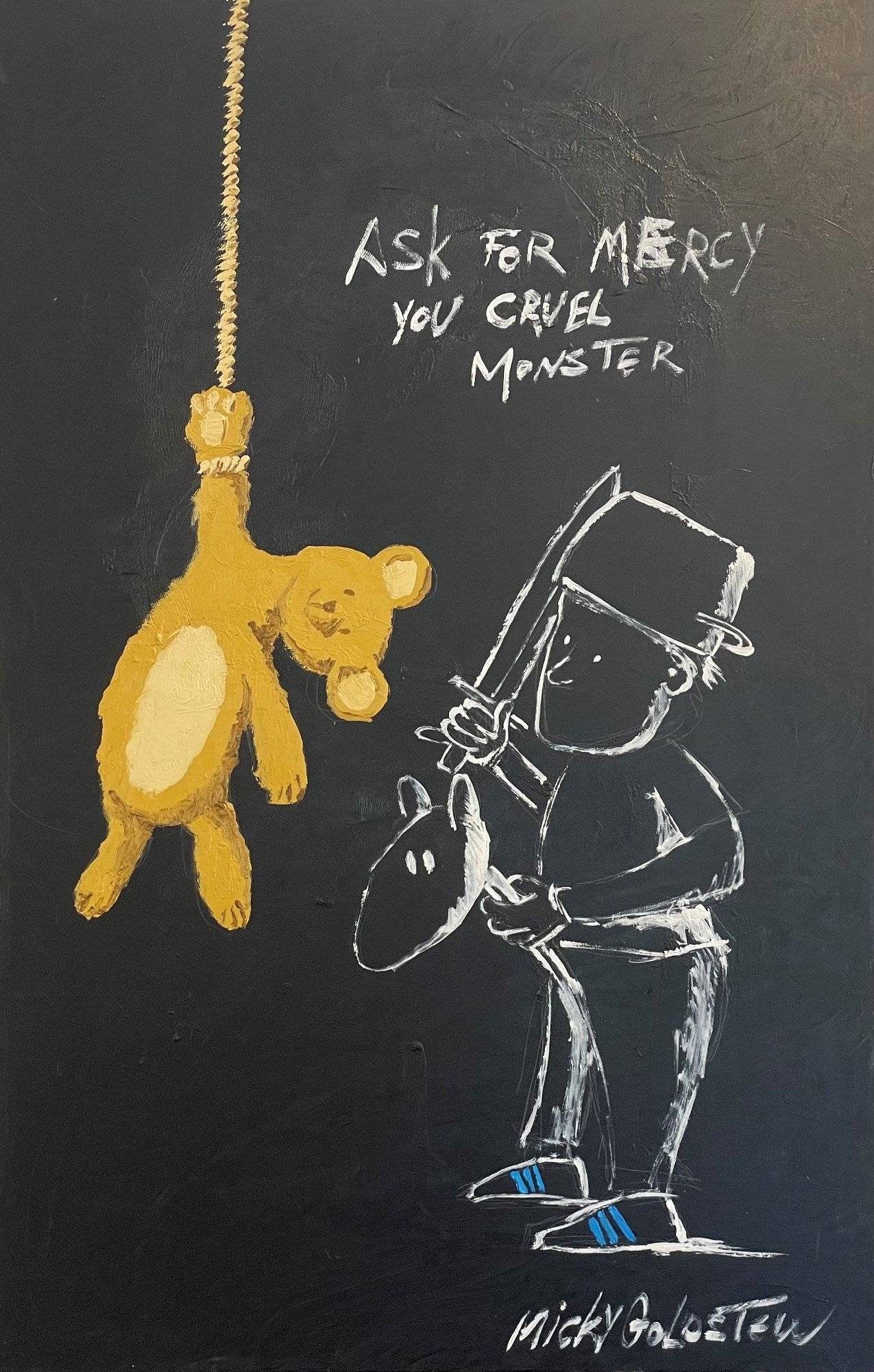 בתערוכת יחיד שתיפתח ביום שישי בגלריה למון פריים, האמן מיקי גולדשטיין מציג עבודות מהשנתיים האחרונות, שצוללות לביוגרפיה האישית שלו ומעלות זיכרונות ילדות בשפה השואבת השראה מקומיקס קלאסי. בתערוכה ״מיקי גולדשטיין: לא מפחד מהחושך״ (אוצרת: חגית פלג רותם, עורכת שותפה בפורטפוליו), הוא מספר סיפור בתמונות קצרות, סצנות ואנקדוטות, שאינן מתיישבות עם מציאות ריאליסטית אחת.