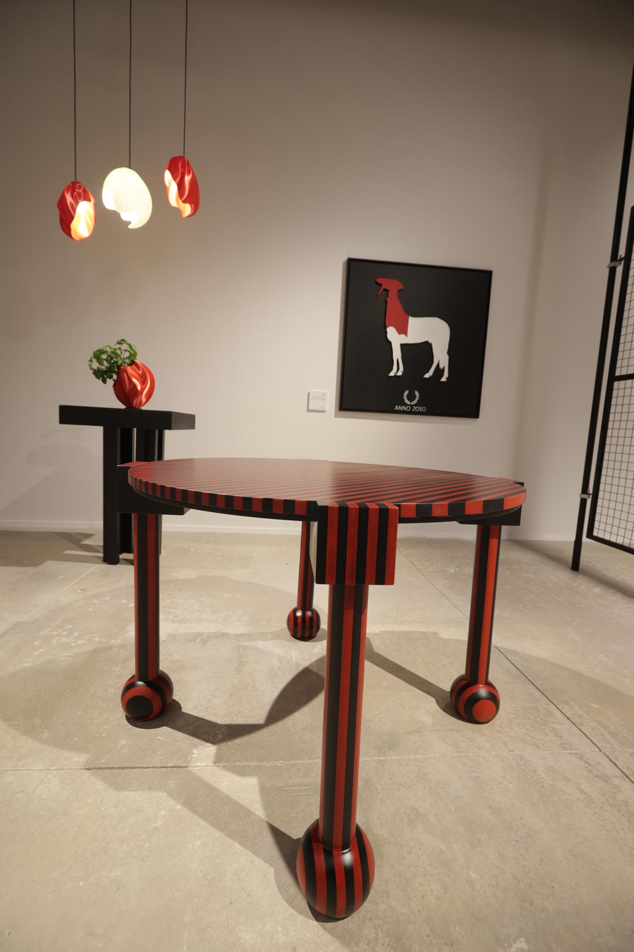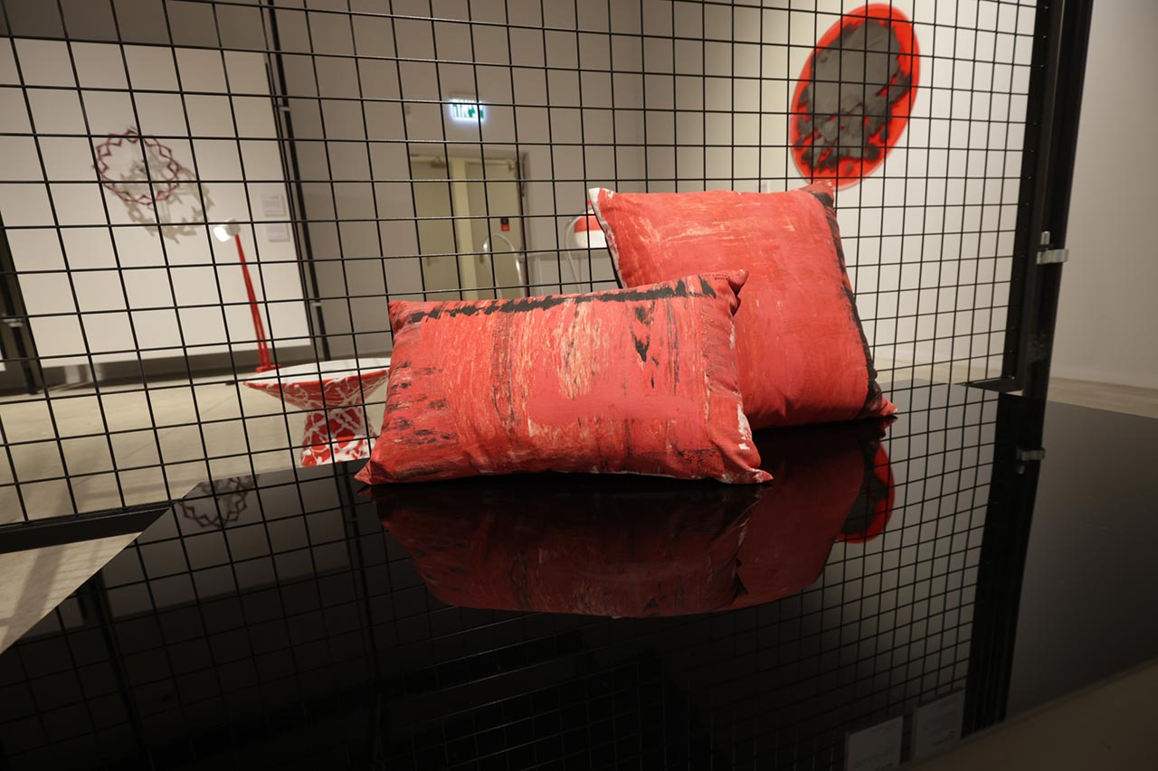 סדרת שולחנות ואלמנט קיר של דניאל אלקיים משמרים בטקסטורה שלהם שינויים שנוצרו בעקבות מניפולציות של שריפה; שי אלפיה, החוקרת השתקפויות, מציגה אוביקט במופע של כתם השתקפות, בעל רקע אדום ורמות אטימות ושקיפות משתנות; גוף התאורה העומד של אסף וינברום מעוצב תוך התכתבות עם האנשה היוצקת ממד של הומור; וממקום שונה בתכלית מציג אוהד בנית עבודה קינטית שפותחה בהשראת טכנולוגיות מתקדמות מתחום הקרדיולוגיה.