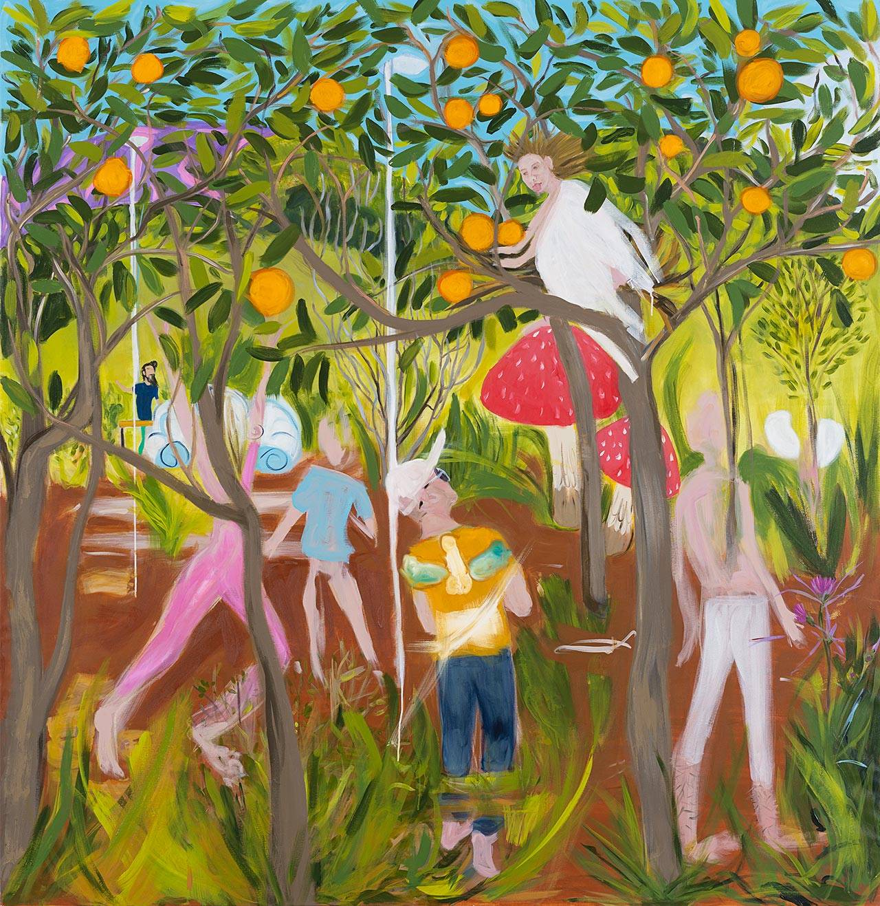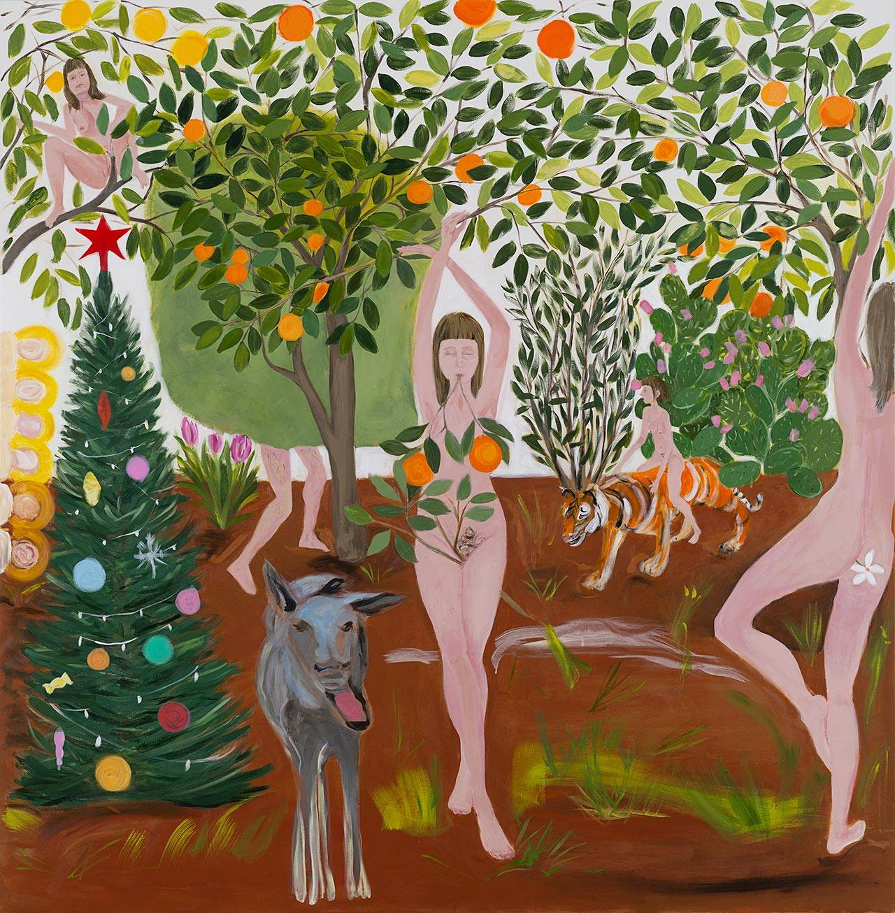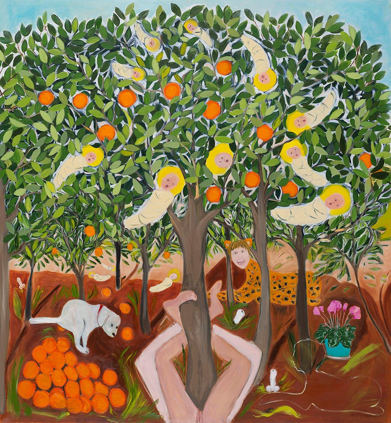 אנה איילת אפל מציגה את ״הפרדס – באתי לדרוך כאן שוב…״ – סדרת ציורים העוסקת בכניסה שלה אל הפרדס. בתערוכה מוצגות שבע עבודות גדולות (שני מטר על שני מטר כל אחת) בצבעי אקריליק ושמן על בד בחלל שהופך צבעוני ועמוס, ומעניק תחושה לצופים תחושה של כניסה אל פרדס. למילה פרדס עצמה, משמעויות רבות עבור האמנית – מחגיגות דיוניסיות, דרך גן העדן ועד לסמל של ההתיישבות היהודית. במשחק והתפרעות היא נכנסת אל תוך הפרדס בשלל דרכים ומצבים. זהו מהלך אופייני לדרך העבודה של אפל: חיבורים בלתי צפויים, משחקיות ושימוש בצורות של זיכרון קולקטיבי.