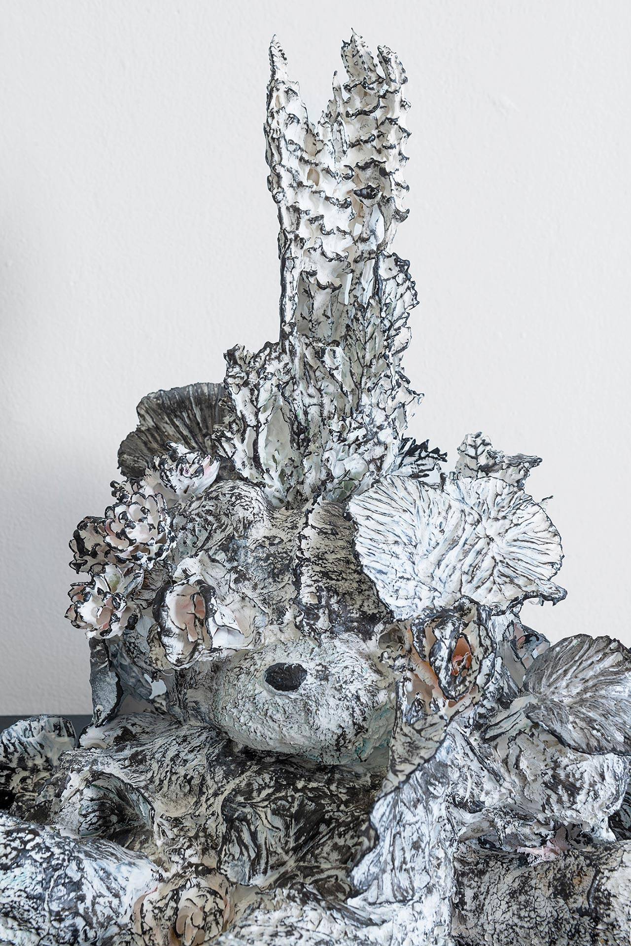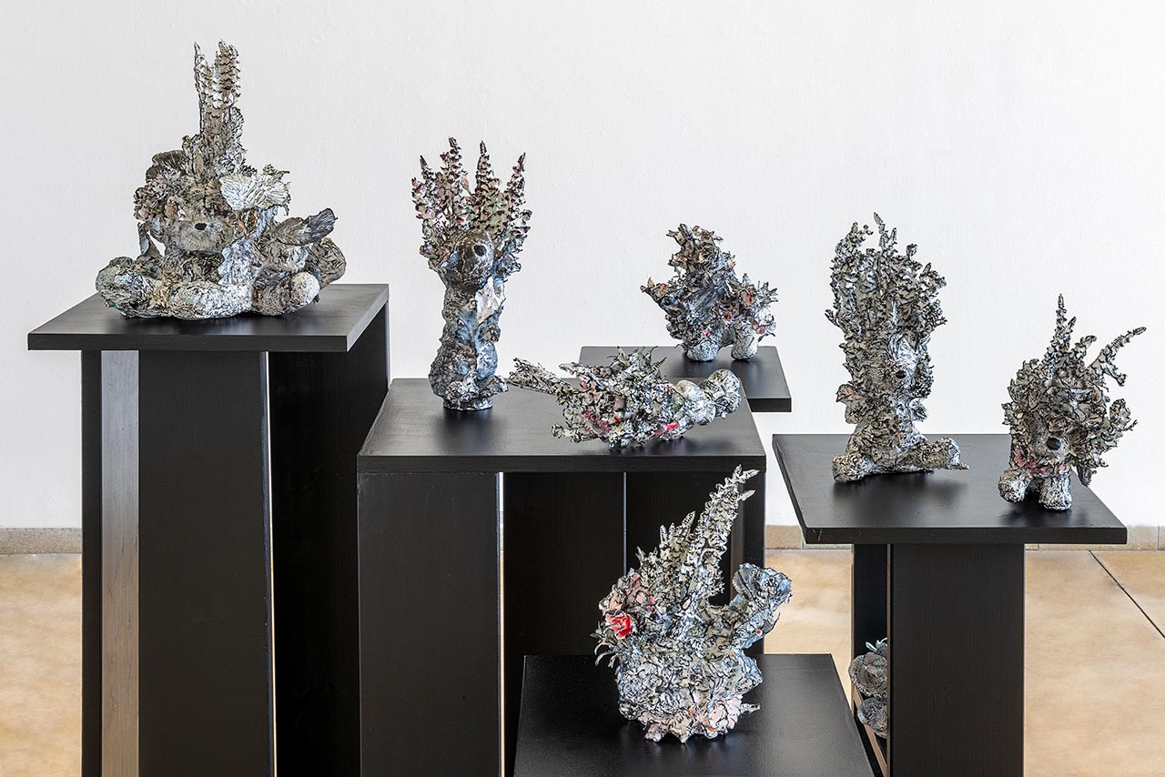 ״VIA״ של שירה ריימן הוא מיצב פיסולי המכיל אוביקט מרכזי שהוא פסל רצפה גדול־ממדים שנראה כייצור חי וזוחל, מורכב מצלעות ומונח על גבי מראה גדולה היוצרת השתקפות פנימית לתוך קרביו החשופים. הוא עשוי מחומרים לא סטנדרטיים – חומרי איטום מתחום הבנייה ופרחים מפלסטיק. אפשר לראות את החומריות הייחודית של האמנית גם בעבודה ״דובוני לא אכפת לי״, שבה מונחים דובים ובובות אותנטיים מהילדות של ריימן לאחר שעברו התערבות פיסולית שכיסתה אותם כמעט לחלוטין, מה שמעניק להם מראה של אלמוגים תת־ימיים.
