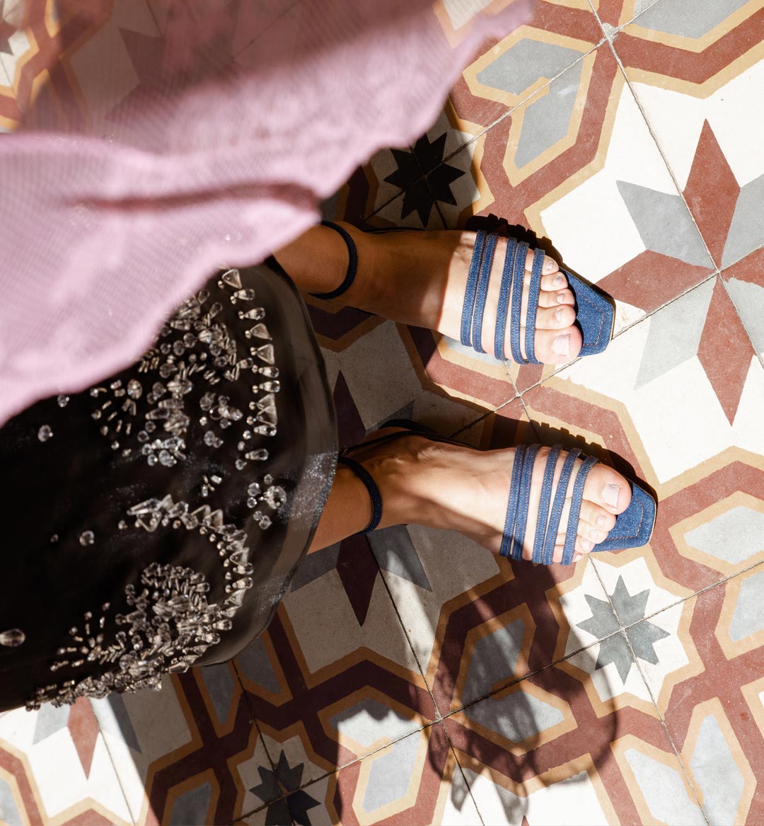 יצור הנעליים נעשה בעבודת יד המשלבת שיטות מסורתיות שקיימות לאורך שנים עם טכנולוגיות מודרניות שהשתלבו בתהליך. הפריטים עשויים עורות קלאסיים שפוגשים טקסטילים ורשתות מודרניות, אלמנטים מסורתיים שמתחברים לגזרות וסטייל עדכני. הצבעוניות שמחה ומגוונת ומשלבת צבעים חזקים ועזים, זהב וכסף ומשחקים של אטימות ושקיפות.