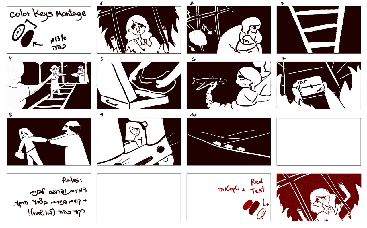 החלק של הפרהוד והמהפכה הפך למונטאז׳ מהיר של אימג׳ים – גם כי היה צריך לתמצת את הסיפור המורכב לסרט קצר, וגם כדי להעביר בבירור ובקצביות את החלק הקשה באופן נגיש גם לקהלים צעירים. אחד הרפרנסים שעזרו לנו לבחור בדיוק מירבי את הפוזות שיעבירו את השתלשלות האירועים הייתה נובלה גרפית בשם ״The Arrival״ שמיש המליץ לנו עליה.
