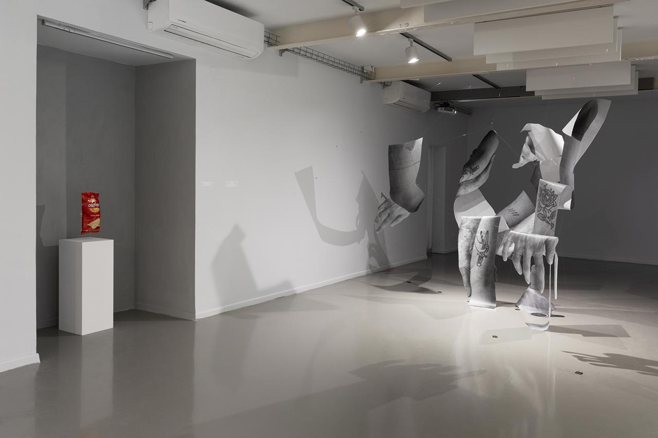 מלבד רוח הרפאים והאיים הכסופים, יש עוד שני דברים משמעותיים שמרחפים בתערוכה – הראשון הוא עבודה גדולה של צילומי זירוקס של הידיים של פרילינג עצמה ובן זוגה, שהורכבו כקולאז׳ מרחף בחלל אחרי שהודפסו חלק־חלק במדפסת ביתית ונשזרו אחד לשני. השני הוא שקית תפוצ׳יפס, רדי־מייד של הרדי־מייד, שמרחף לו מעל פודיום שמוסיף לו יראת כבוד משמעותית.