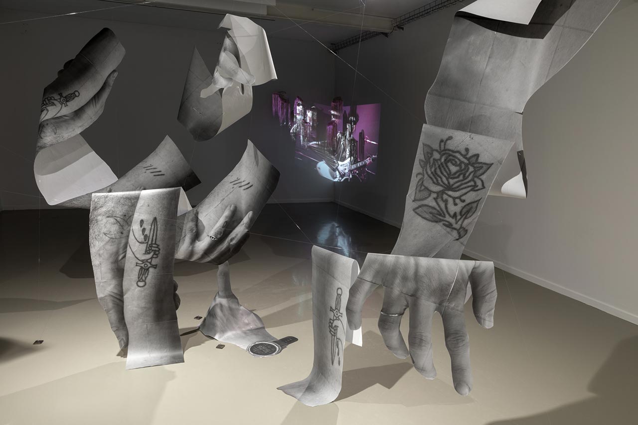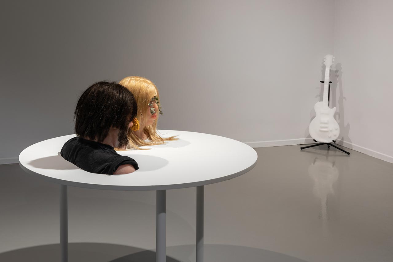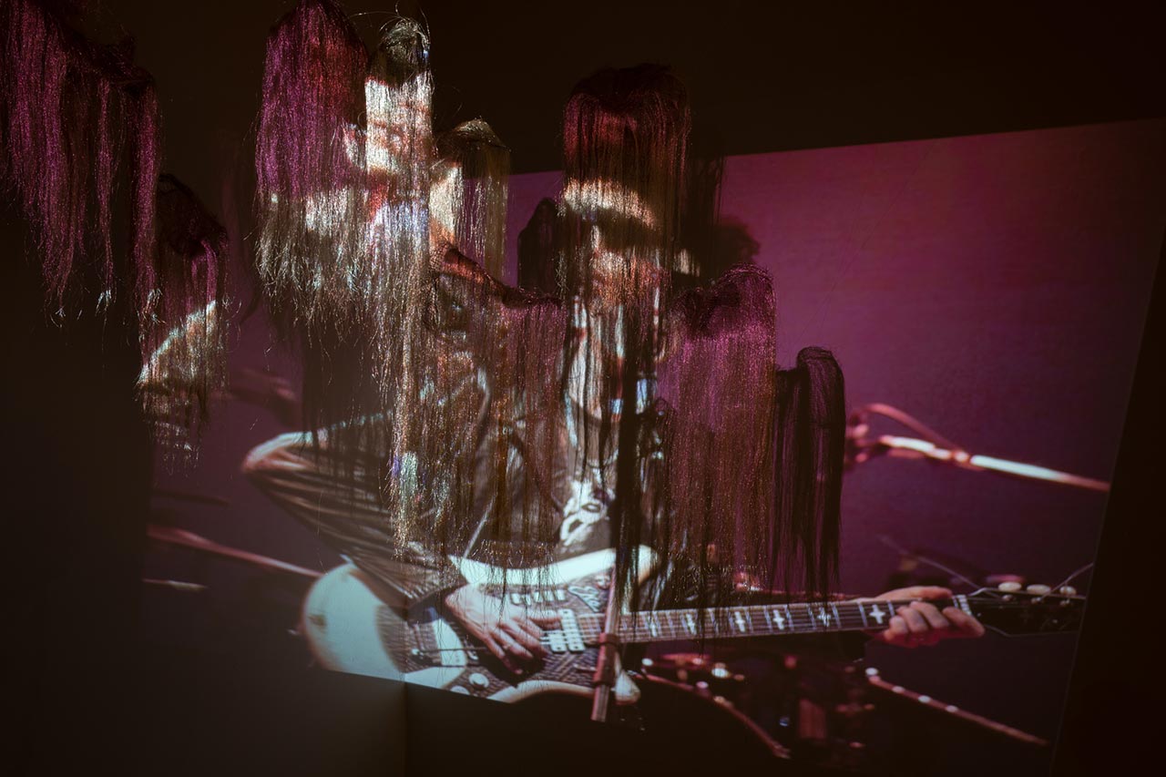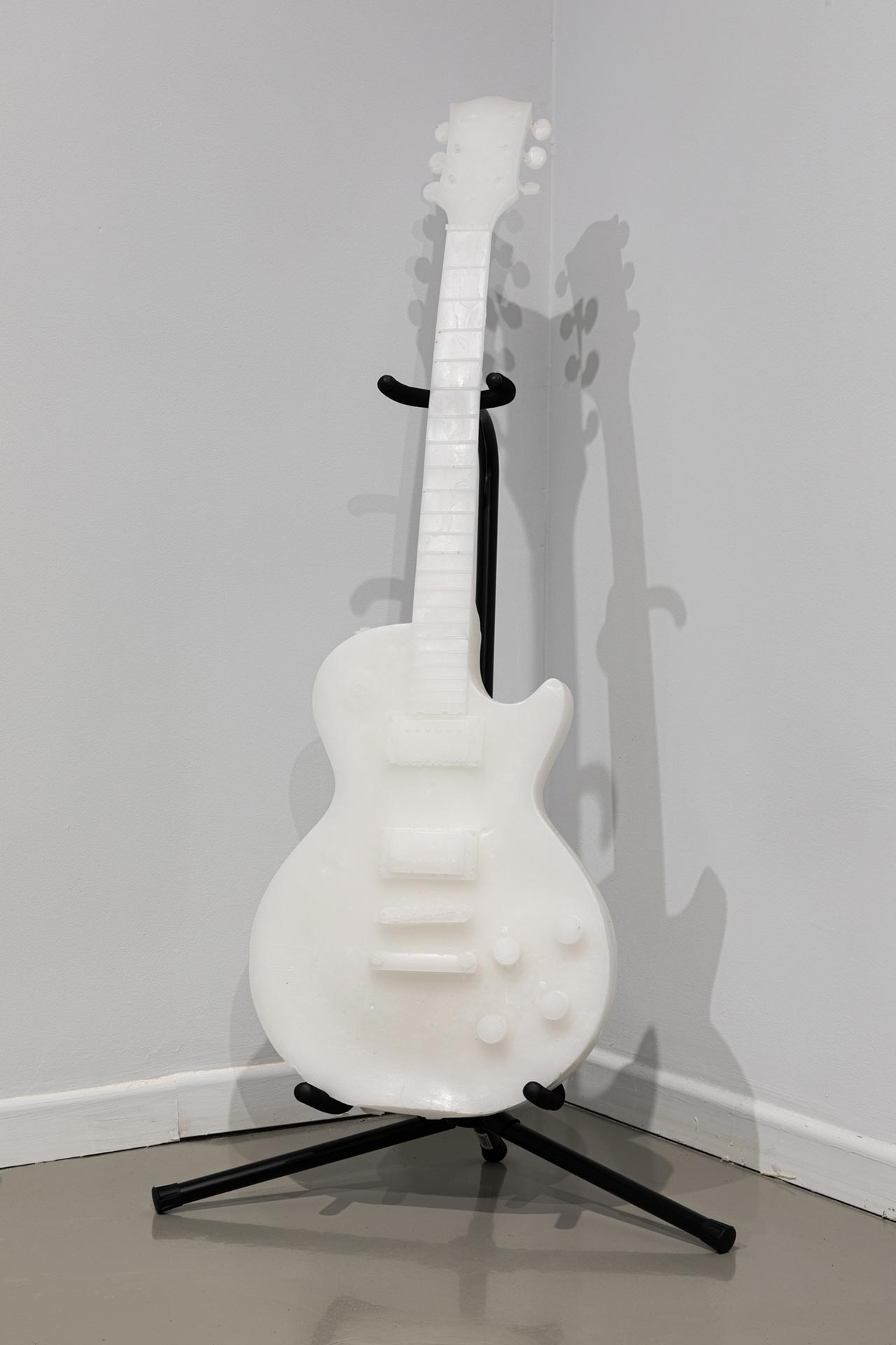 עוד עבודה היא יציקה של גיטרה חשמלית בשעוות נרות (ללא פתיל, כי היא לא מעוניינת להתיימר להתחרות באורס פישר) שמחברת כמו בקו דימיוני בין שתי פינות הגלריה – את הגיטרה היצוקה והגיטרה של צ׳רלי מגירה. ״זה הרגיש כמו לעשות תערוכה קבוצתית, אבל לבד״, היא מסבירה את השימוש בחומרים הרבים והשונים. ״זו תערוכה שקטה יחסית, אבל היא הרגישה לי כמו הפרעת קשב. יש לעבודות תדר אחיד, אבל כל חומר מגיע עם צרכים ספציפיים – תאורה, טכניקות, למידה״.