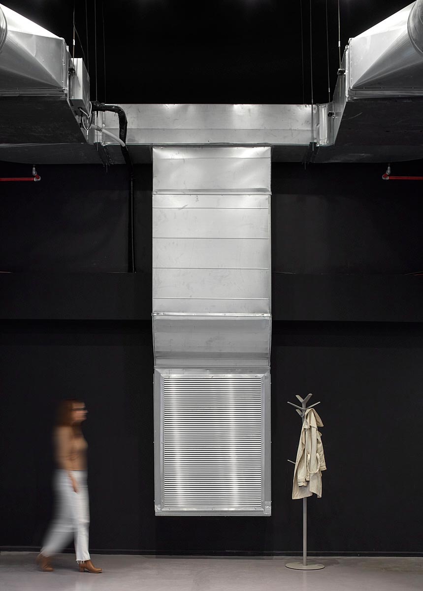 שפת העיצוב שגיבש לוי – בשיתוף האדריכליות גלית לין, נטע הראל, מאי רג׳יאנו, ספיר הלל ושירה לוי – מאופיינת במראה אורבני־תעשייתי, גס וגולמי משהו. מטבע הדברים, קיום הפעילות המוזיקלית בחלל הכתיב טיפול מוקפד באקוסטיקה, שבוצע כך שיתאים לאסתטיקה. התקרה הגבוהה חופתה בחומר בולע קול המדורג כבעל מקדם אקוסטי גבוה ביותר, בשני צדדיה נתלו פאנלים אקוסטיים, וגם בחללי המשרדים שולבו לוחות אקוסטיים. פני שטחה של התקרה נצבעו בשחור, וכך גם קוליסות פלדה שהיו מותקנות בה ובעיצוב העכשווי נוצלו להתקנת ספוטים. חשיפת תעלות המיזוג הכסופות משלימות את מופעה. ״התקנת גופי התאורה על הקוליסות היא מבחינתי דוגמה לניצול האלמנטים הקיימים, וגם הזדמנות לשימור ארומה כלשהי של העבר״.