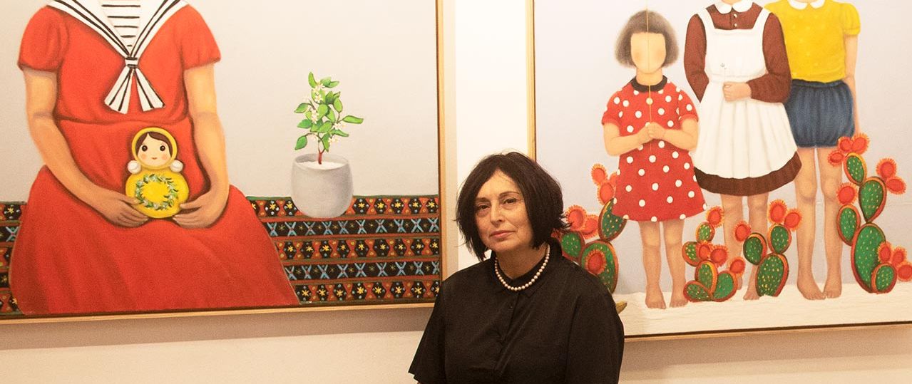 ״הדמות האמצעית, שהיא גם הראשונה שציירתי, היא הילדה הסובייטית, הממושטרת. לידה משמאל עומדת דמות של ילדה קטנה ותו לא, ומימינה דמות הילדה הישראלית העולה. בני הדור שלי וגם בני הדור שבא אחריי שעלו מרוסיה לא דיברו על האפלייה כמו שמדברים עליה היום. כשהגעתי ארצה, מחקתי את הרוסיות שלי. סירבתי לדבר רוסית והלכתי כל הזמן לים להשתזף כדי להיות דומה לצברים. די מהר ניכסתי לעצמי זהות חדשה, אבל גם היא לא היתה צברית לגמרי, אלא רק כמעט״.
