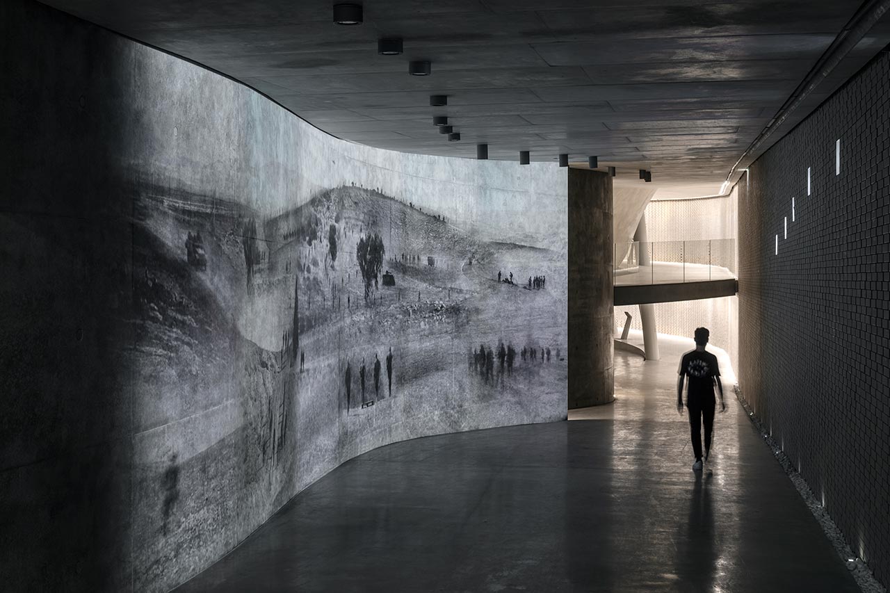 השטח שיועד לבניית הפרויקט, שנחנך בשנת 2017, הוא שטח מצומצם – 30X30 מ״ר, או כמו שמגדיר אותו קימל, ״שטח קטן מדי כדי לארוז בו חוויה שלמה מהסוג שההיכל נועד לייצר וחתר לייצר״. בתוך כך הוחלט לחפור באדמה, והמבנה, המדמה לפיד, תוכנן כמבנה ספירלי שמתנשא מעומק החפירה לגובה 18 מטרים. מעטפתו החיצונית תוכננה כמארג של מדרגות רחבות, מעין טרסות אבן המשתלבות עם סביבת מיקומו, ואל הכניסה להיכל מובילות מדרגות חיצוניות.