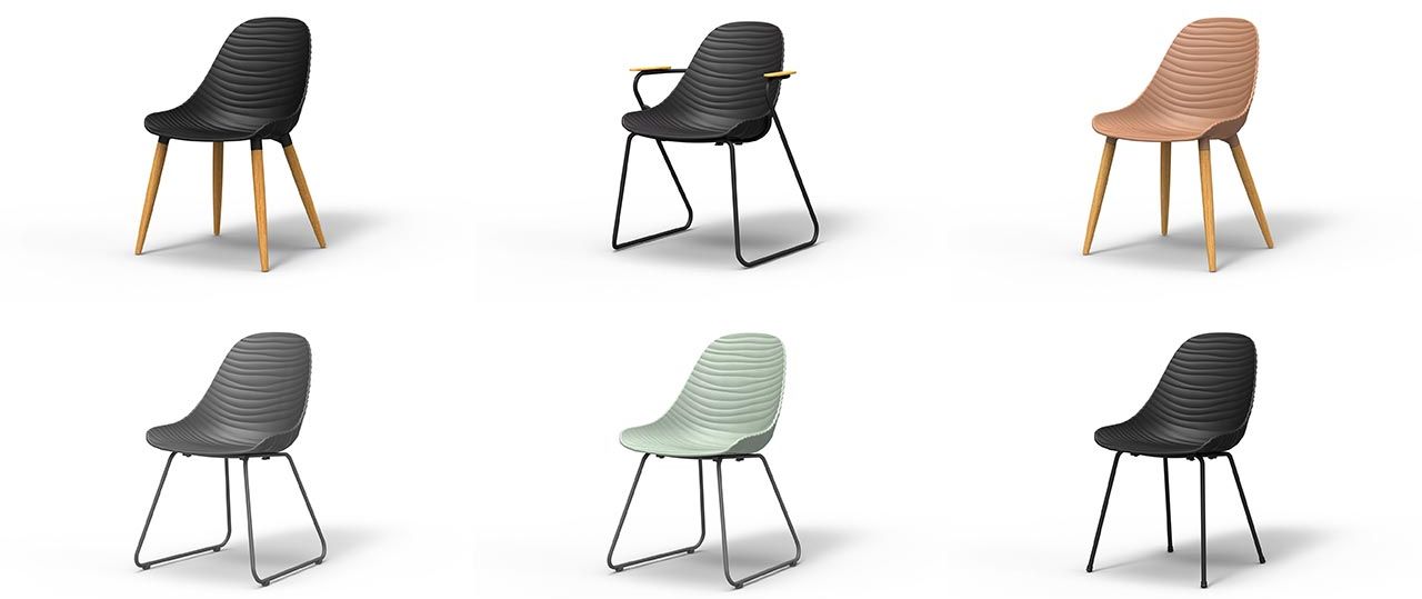 STREAM, סדרת כיסאות העשויה 100 אחוז פלסטיק ממוחזר (Social Plastic), המאופיינת באסתטיקה חדשה ואלגנטית לחלל הביתי וסביבתו.