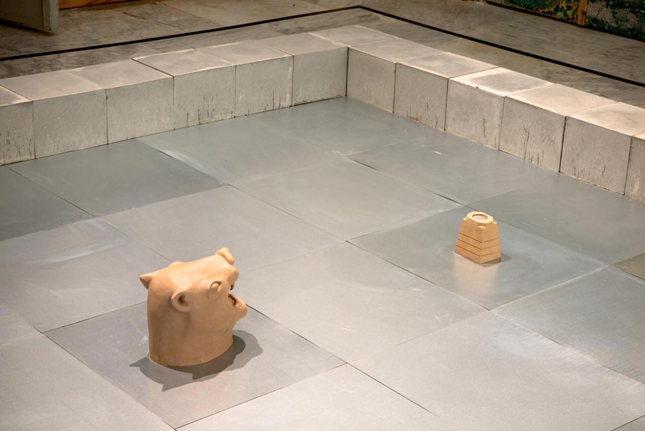 מקור ההשראה לעבודה נובע מתרבויות קדומות – פסלים, אנדרטאות, קברים וסוגים שונים של אוביקטים שאני פוגש ביומיום בעיר ואני מתעניין בהם בשל התנגדותם לזמן; אוביקטים שאמנם שייכים לזמן אחר, רחוק מתקופתנו, אך עוד ממשיכים להשפיע ולעצב את הווה. הפסל מתפרס על כל רצפת הגלריה ומדמה מעין מזבח המתייחס לארכיטקטורה של החלל דרך הדגשת הקשר שבין פיסול למונומנט.