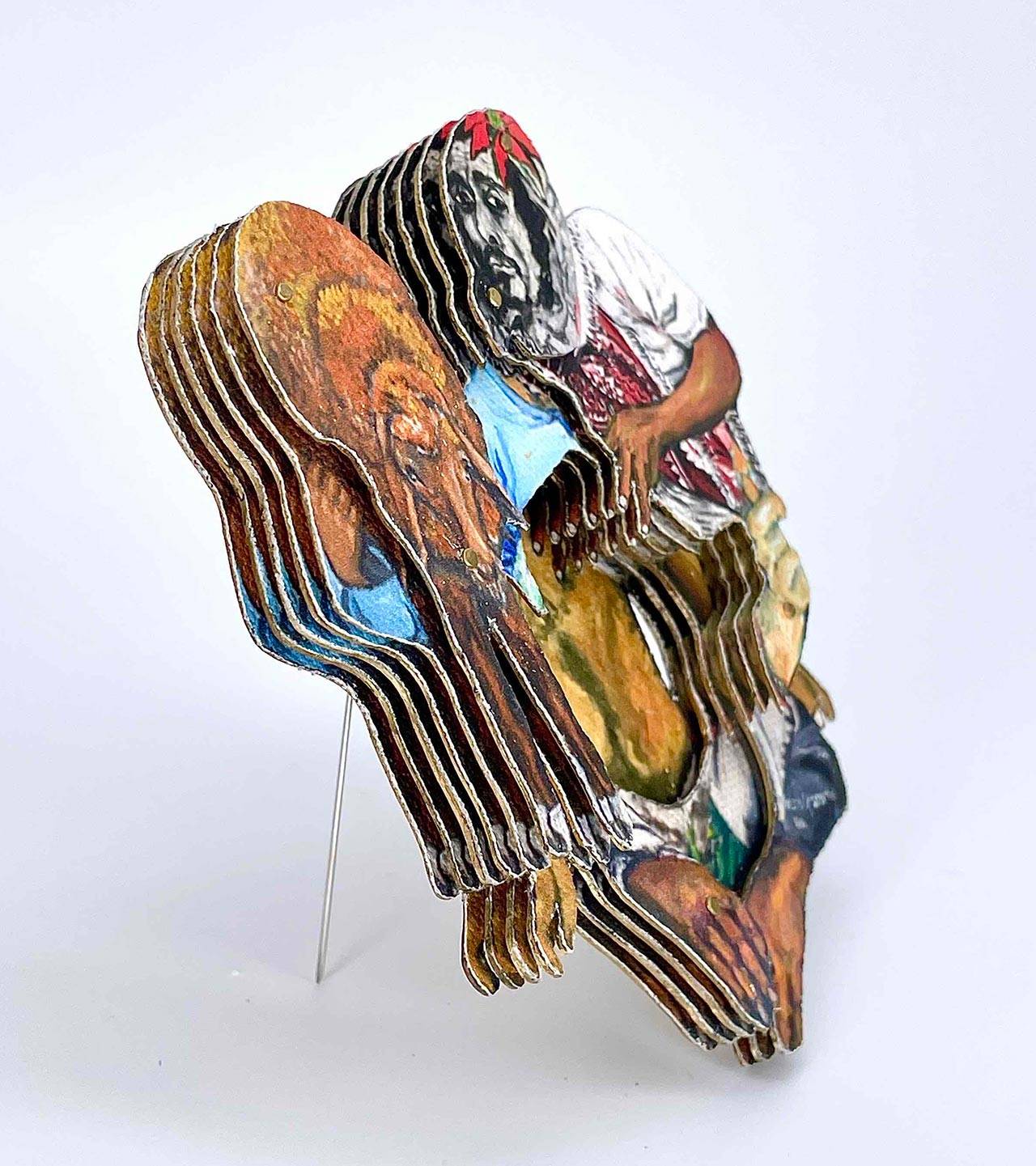 עומרי: עכשיו אני מציג תערוכת יחיד בניו יורק ב־Marlen Merson JCC gallery שבמנהטן. האוצר של התערוכה הוא אודי אורמן, שאני עובד איתו כבר שנה. הקשר בינינו התחיל כשסיפרתי לו שאני עובד על אוביקט שהוא כמו תכשיט פנים, שמשלב פרגמנטים מתוך ציורים של סבא שלי שאני משבץ בתוך קונסטרוקציית מתכת שאני יוצר.