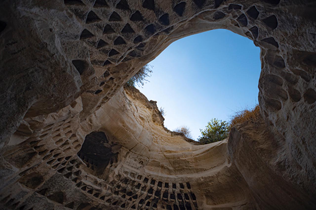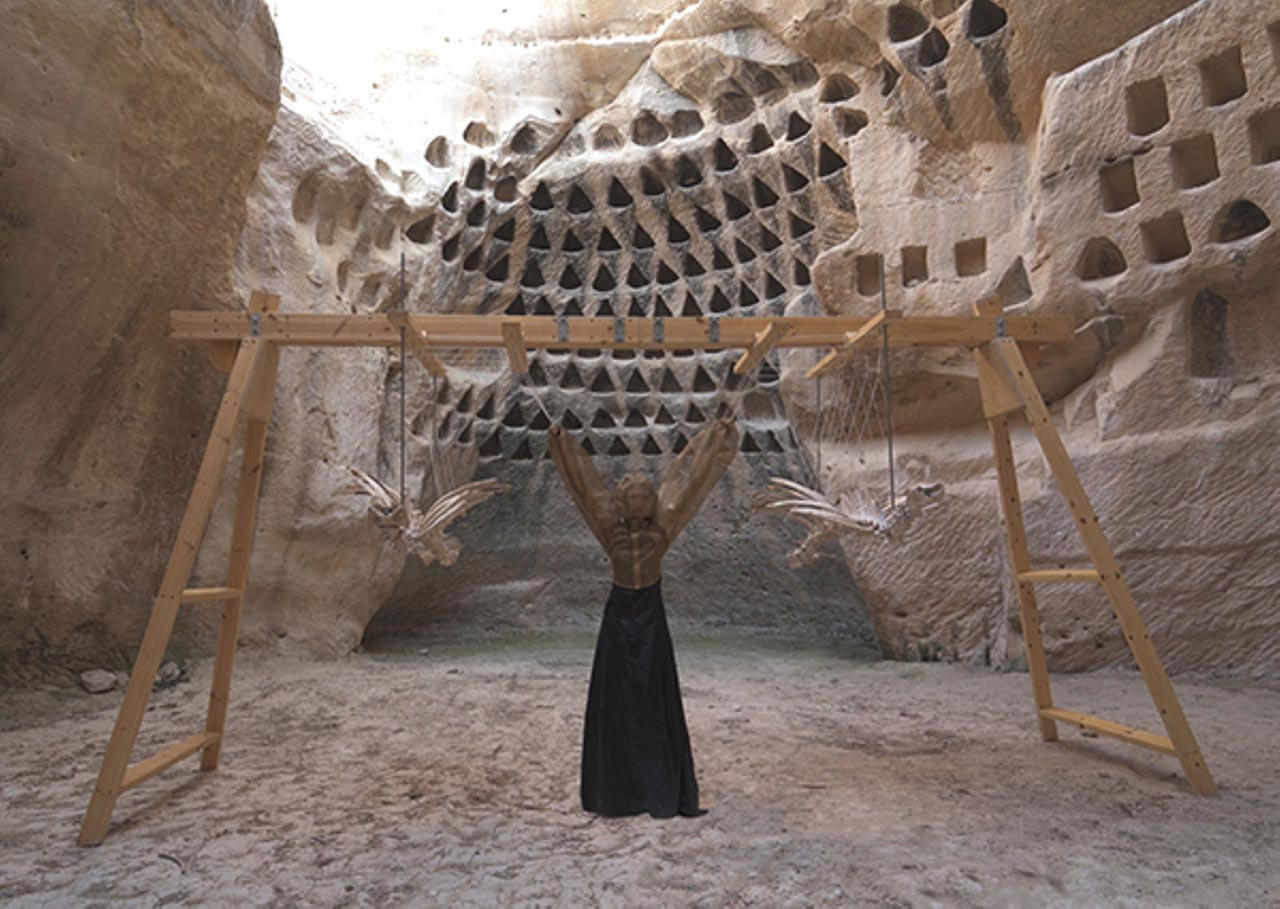 היא ניסתה למצוא סביבה טבעית שתזכיר מבחינה ויזואלית את כוורות הדבורים. ״התחלתי בבריכת המשושים, שהיא דומה בצורת המשושה, אבל היא לא היתה נכונה מבחינת הגודל. משם הגעתי לקולומבריום (מתקן חצוב בסלע ששימש היסטורית גם לפולחן מתים וקבורת אפר המתים וגם לגידול יונים, קינון והטלת ביצים), שהוא אמנם מקום שמיועד ליונים ולא לדבורים אבל יש איזו תחושה דומה בחלל, גם מבחינת הצפיפות של התאים שמזכירים כוורת. הקולומבריום שנבחר היה אחד סמוך למערות בית גוברין״.