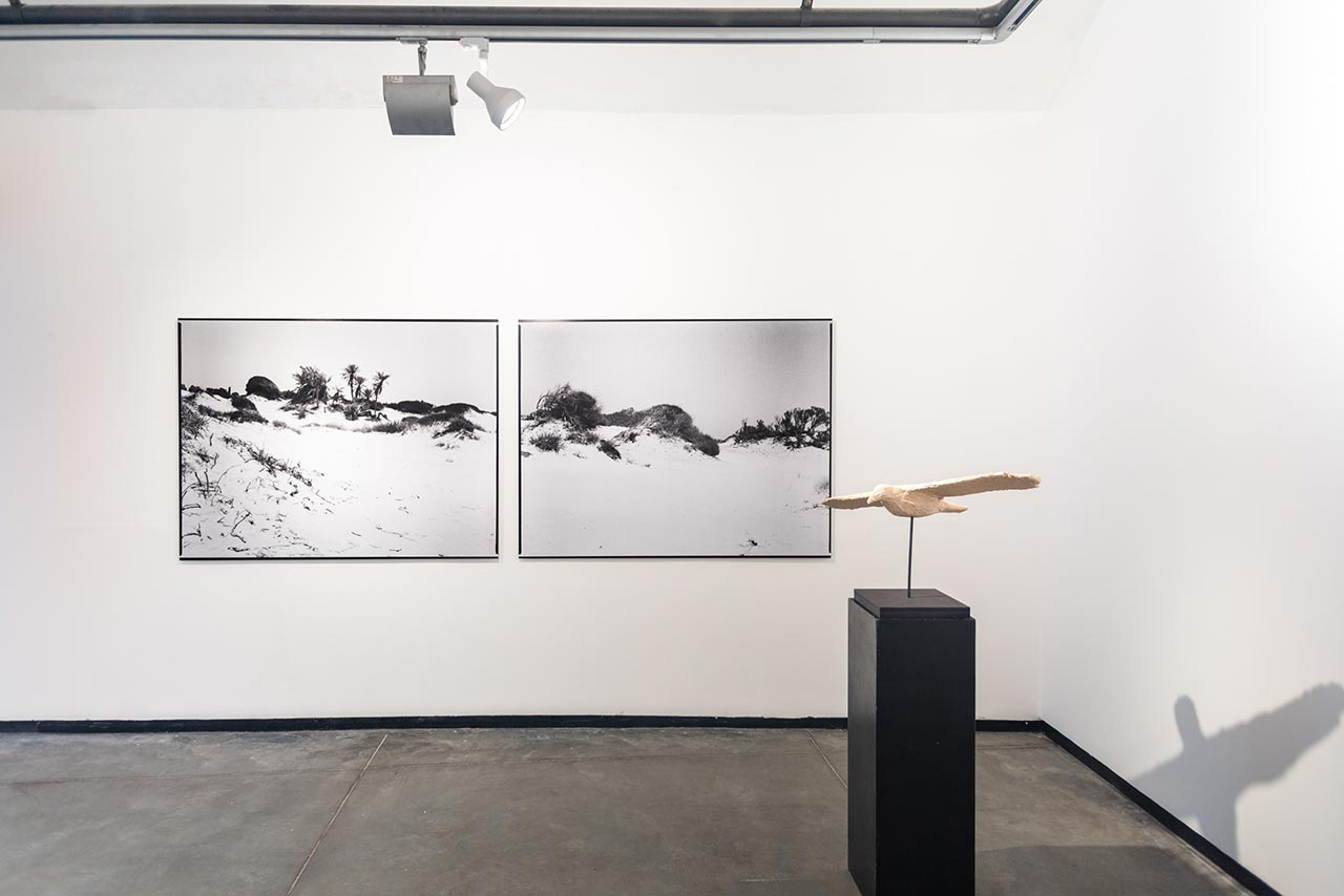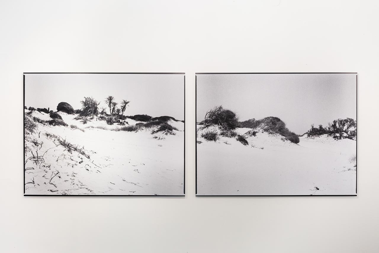בנוסף, יש בתערוכה שני צילומי שחור־לבן גדולים של דיונות חול שצילמתי בחוף זיקים הסמוך לקיבוץ יד מרדכי – החוף הדרומי ביותר בשטח ישראל לפני חוף עזה. המצלמה מופנית מהנקודה הדרומית ביותר שיכולתי להגיע אליה אל עבר חופי עזה, וכך זה איזה מן ניסיון לראות ולהגיע למקום שאני לא יכולה לראות או להגיע אליו במציאות. בצילומים דיונות החול הטבעיות והפראיות מסתירות אנטנות צבאיות המתנוססות מאחוריהן, וכך הם מייצרים אשליה של מדבר שליו ורגוע.