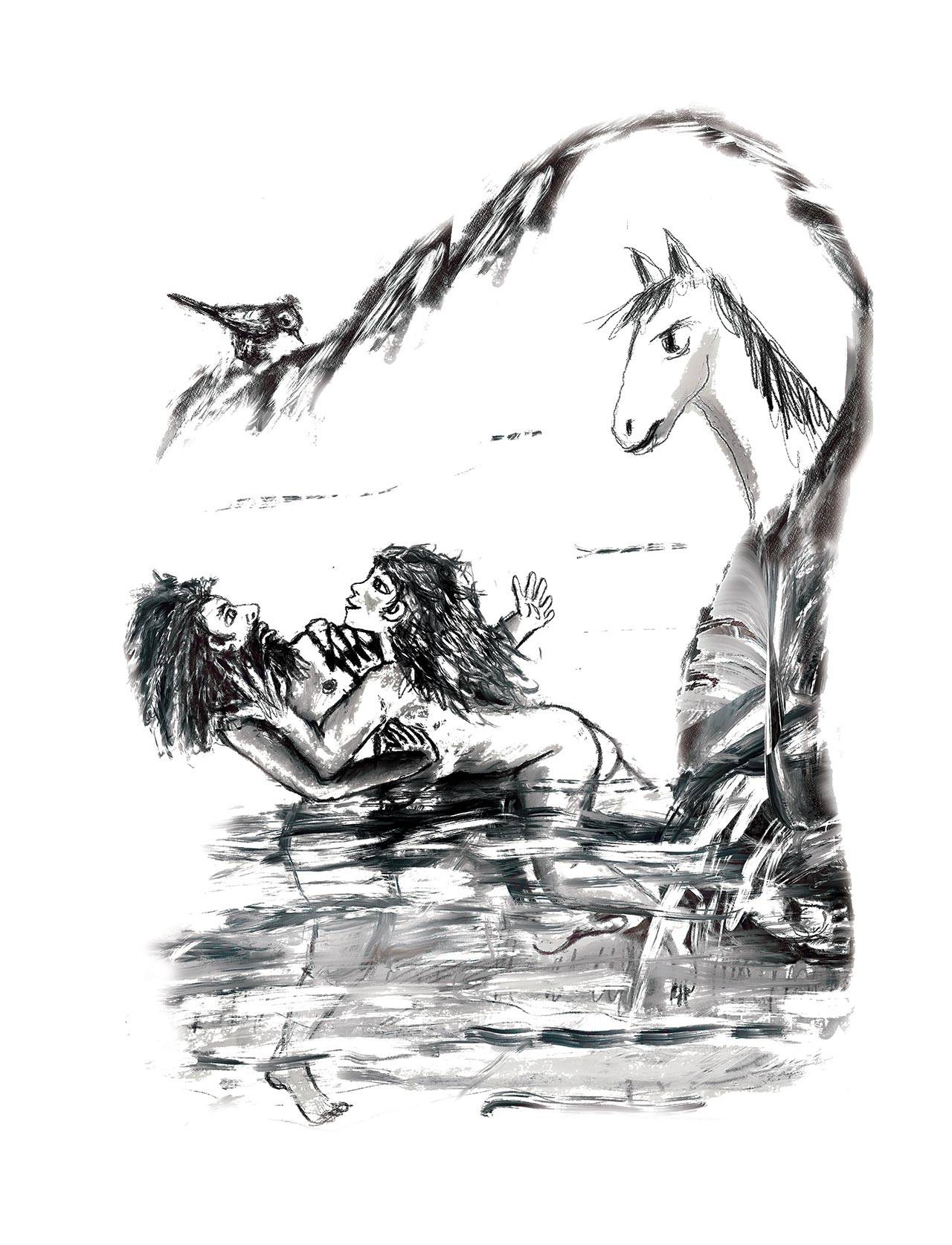 ואחד האיורים הראשונים שעשיתי, גוליבר הזעיר והיהיר נופל לערימת חרא לצהלת כולם. אני אוהבת אותו מאוד, והוא באמת לא דרש הרבה עבודה כמו האיורים הקודמים. והיה גם איור שנאלצתי לצנזר 🤭 נתנו לי יד חופשית, אבל כנראה הגזמתי. כאן היאהו קופצת על גוליבר הנבוך כאשר הוא רוחץ בנהר…