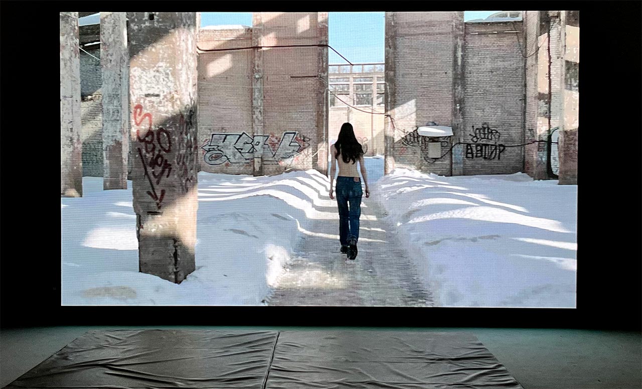 החצר הנטושה כוסתה בשלג פריך, שנדמה שרגל אדם לא דרכה בו, בניגוד לקירות שכוסו בגרפיטי, עקבות יחידים לפעילות אנושית. פעם אחר פעם דאגלס צועדת ברחבי החצר הנטושה. המצלמה נעה בין תיעוד מרחוק לבין נקודת המבט של דאגלס. היא נראיתה תקועה, לא מצליחה למצוא מוצא, מתחילה את המסע שלה בכל פעם מחדש, מחפשת תשובה, ממש כמו המבקרים במוזיאון.