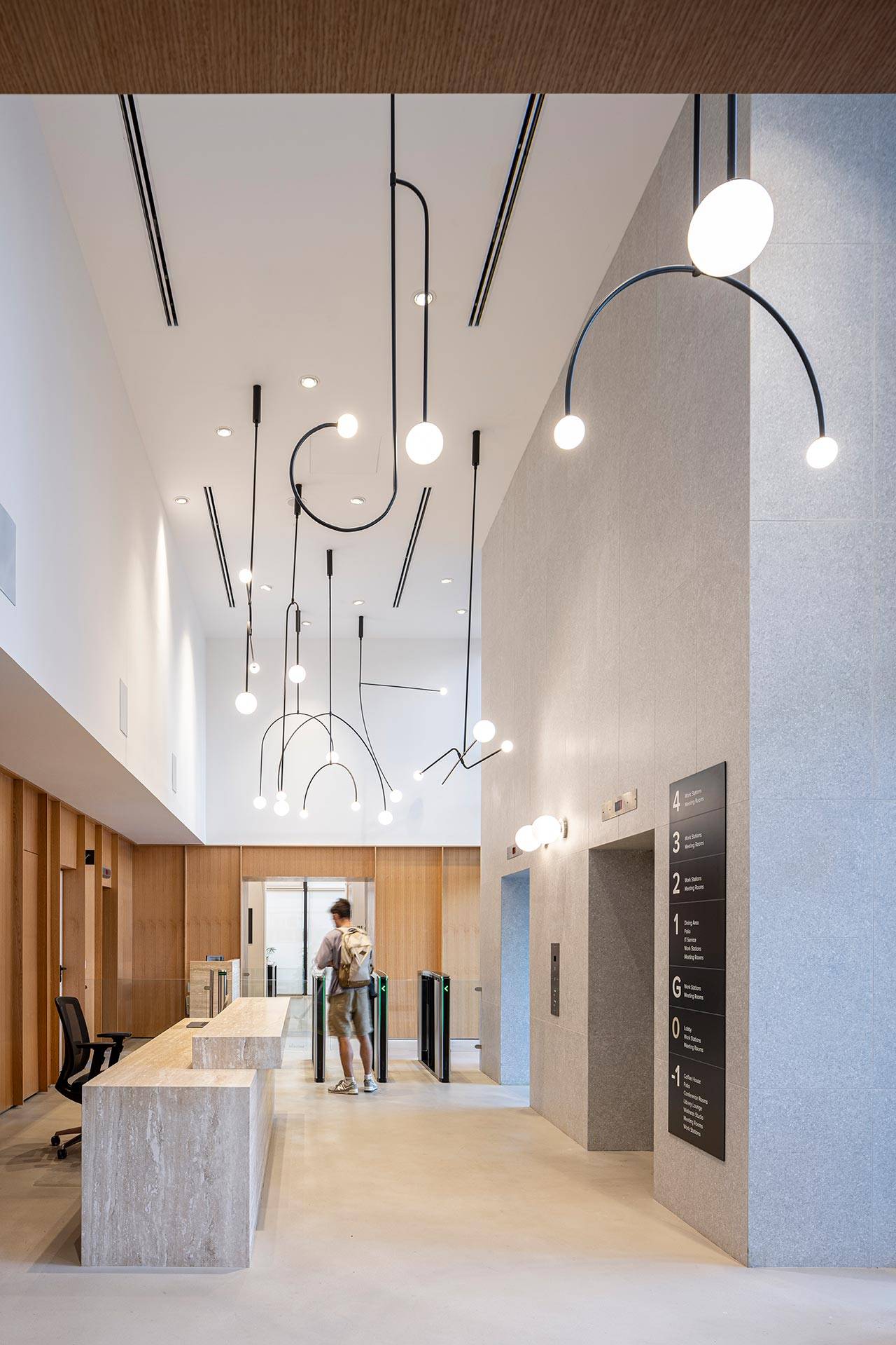 בהלימה לשפת העיצוב הטבעית־שקטה, גם הגופים טכניים הם מעודנים. תכליתם היא להדגיש את החומרים ולייצר אווירה ולא לתפקד כמופע בפני עצמו. גופים דקורטיביים משולבים באזורים משותפים, כמו אלה שבאולם המרכזי שקושרים אותו עם קומת הגלריה, או גופים שונים באזור המטבח והאוכל.