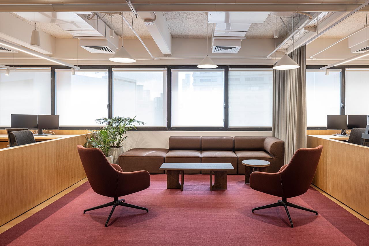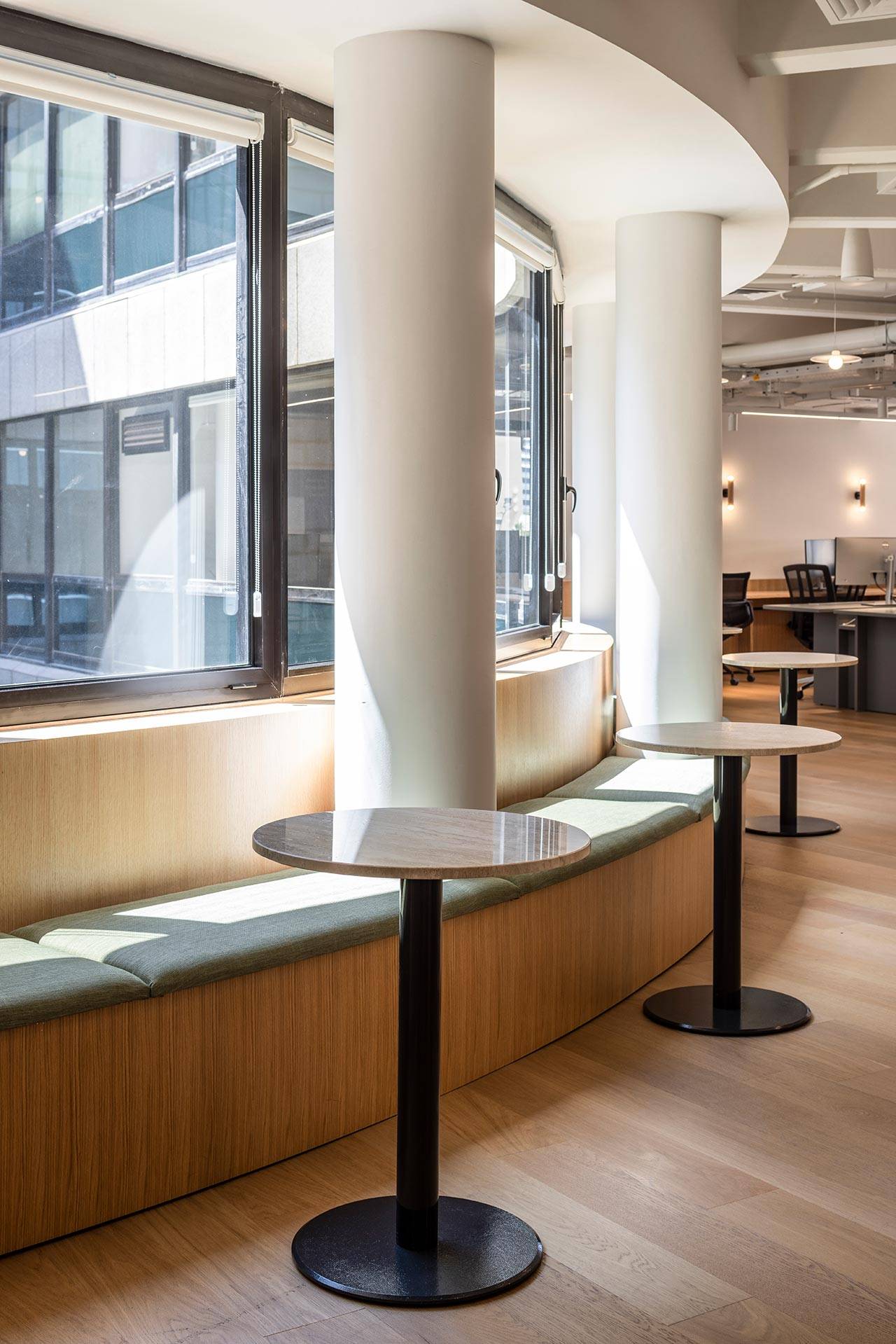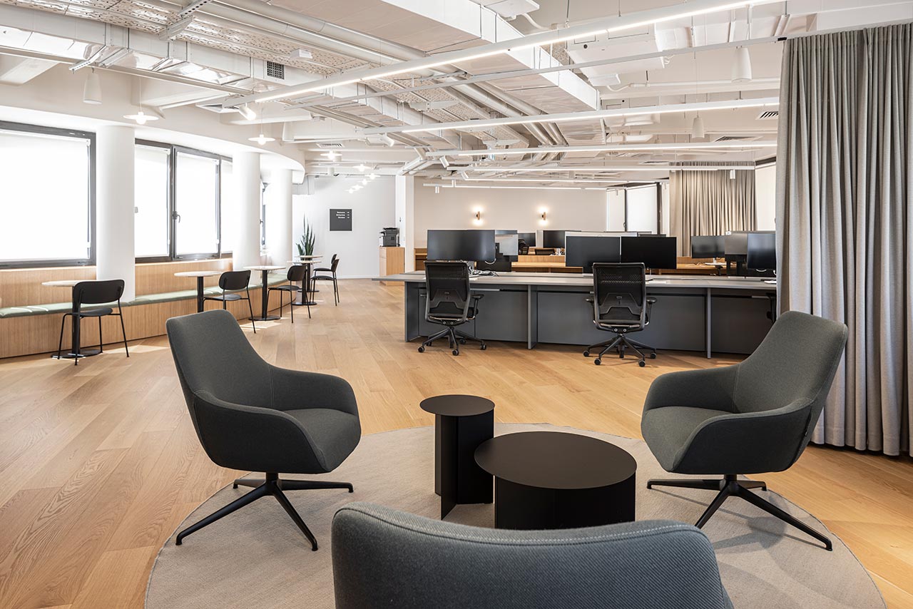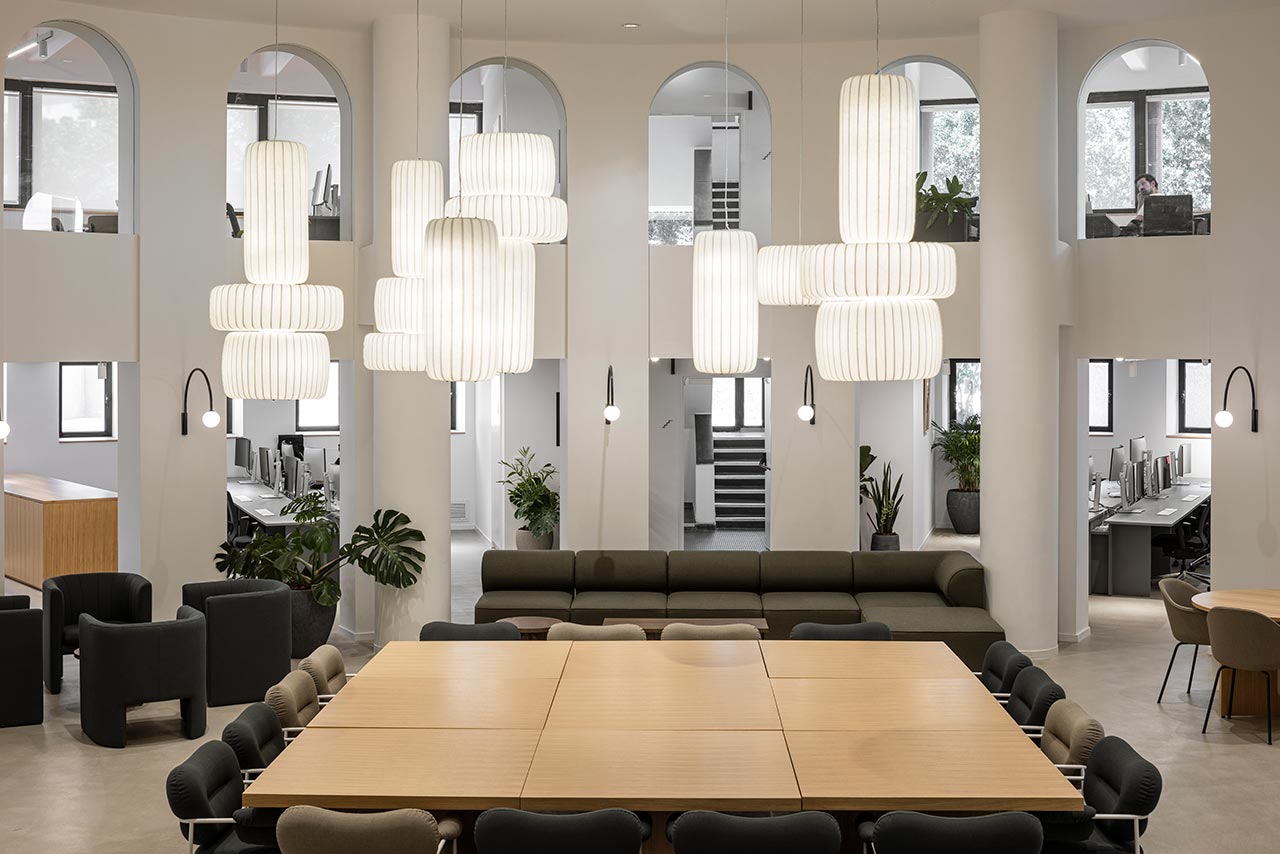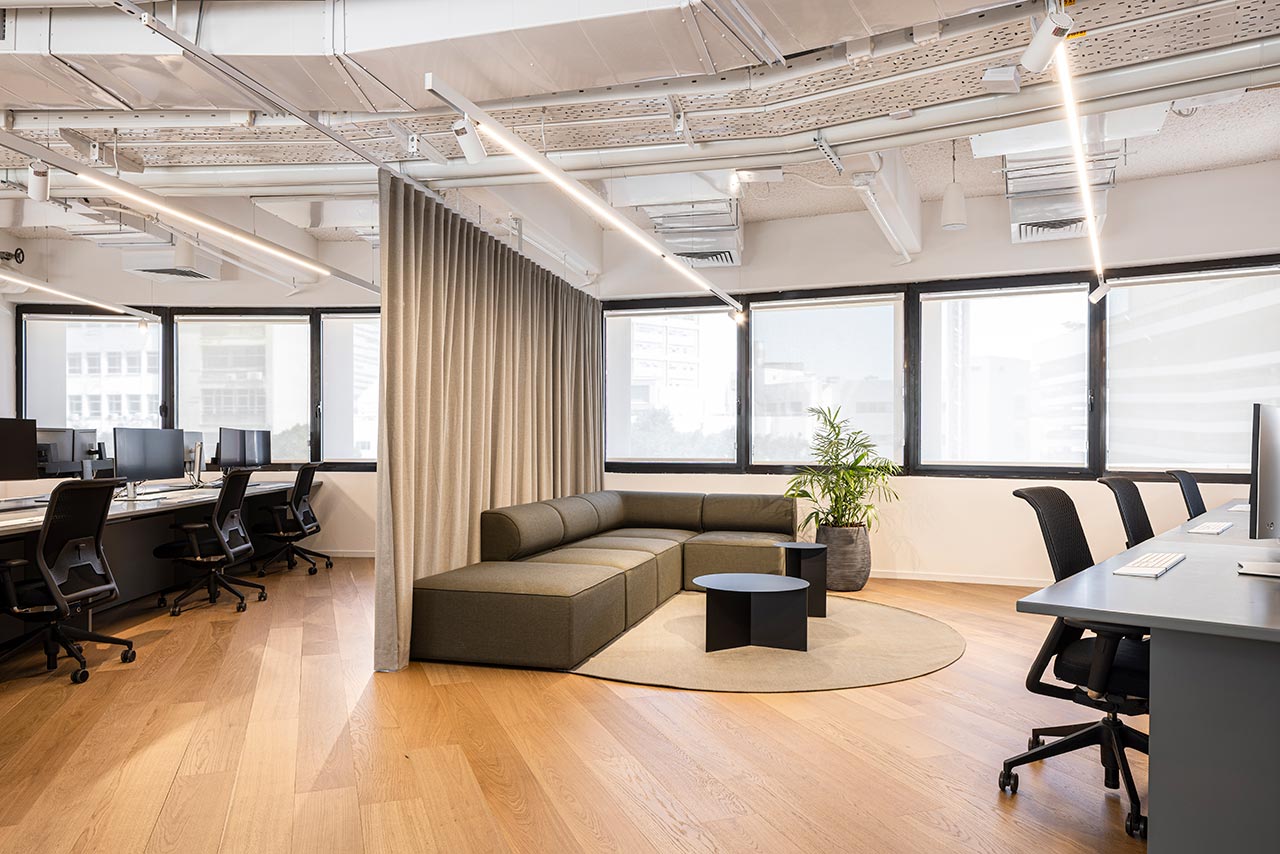 ״מאידך, החלל הריק שנגזר מתצורת הפרסה של הבניין והחלונות הרבים במעטפת היטיבו עם חדירת אור טבעי פנימה – גורם בעל משמעות רבה במרחבי עבודה. עיקר האתגר היה לשמור על החזון האסתטי של נורם ולתרגם אותו הכי טוב שאפשר, לטובת יצירת סביבה טבעית, רכה וזורמת ולא תעשייתית למראה״.