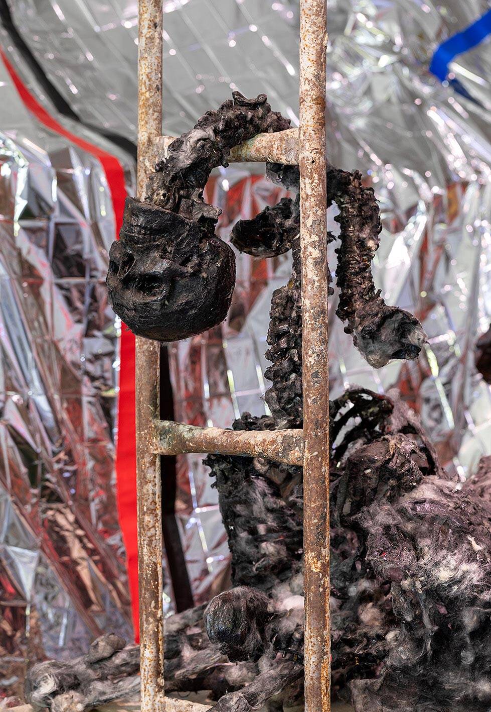 את אותם השלדים לקח ספיר ופיתח לעבודה שמוצגת כעת בתערוכה, בזמן שעבד בסטודיו ברחוב ביאליק שאליו נכנס בהזמנת אאוטסט וקנדידה גרטלר. לפני כן, עוד הספיק לאסוף במשך חצי שנה כ־700 עלים של עץ פיקוס, וכשנכנס לסטודיו החדש פרש אותם על הרצפה. ״הם נראו כמו גלמים שמונחים על הרצפה. היה לי ברור שארצה לצבוע את חלקם בשחור ולייצר דימוי של תופעה, מעין מחלה שהתפשטה״. בתערוכה הם מוצגים בגריד אנכי משופע באחד מצדיו של האוהל המרכזי.