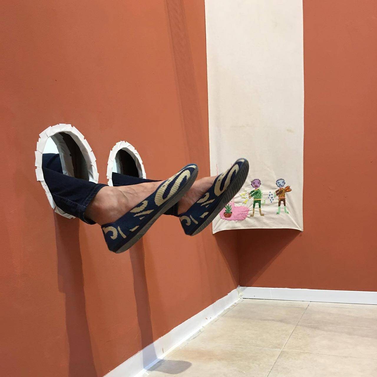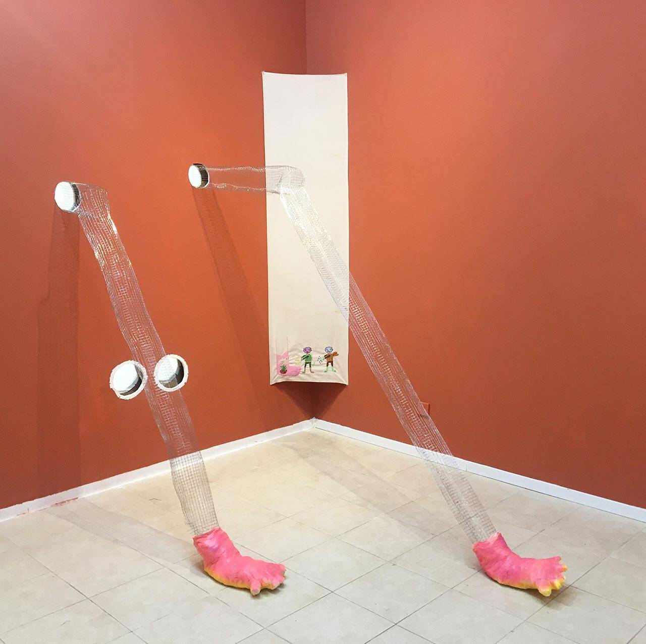 הרגליים חזרו והופיעו בעבודות נוספות בתערוכה. הכוונה שלי הייתה לעצור רגע ולומר תודה לרגליים שלי ושלנו שמצעידות אותנו קדימה מבעד לכל קושי ואתגר. הופתעתי לגלות שאנשים רבים שמחו להתמסר לשכיבה בחלל התערוכה כשרגליהם משתלשלות מחורים בחדר הסמוך. ברגעים אלה הרגשתי שהעבודה והתערוכה שלמות. כל רגע כזה היה שונה ממשנהו, ובכל זאת כל כך דומה. אין לאמנות הצדקה לולא הצופים והמבקרים.