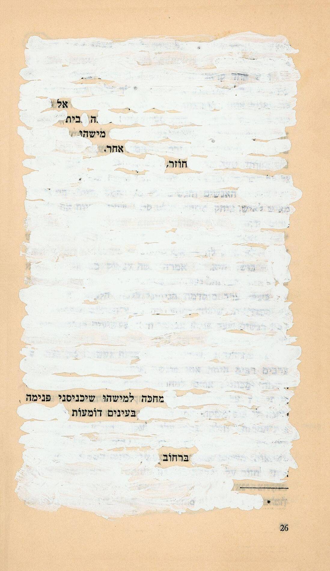 לכל דף נתתי הזדמנות להיות עבודת אמנות עצמאית; דימויים החלו למצוא מקום על הדף ולנהל דו שיח עם המילים שלא נמחקו. לאורך השנים העבודה על דפי ספרים ליוותה את העשייה האמנותית שלי בסטודיו, וכבר משלב יחסית מוקדם ידעתי שיום יגיע ואחזיר את הדפים אל ספר חדש, ספר שהוא כולו עבודת אמנות שלמה.