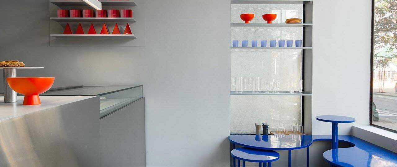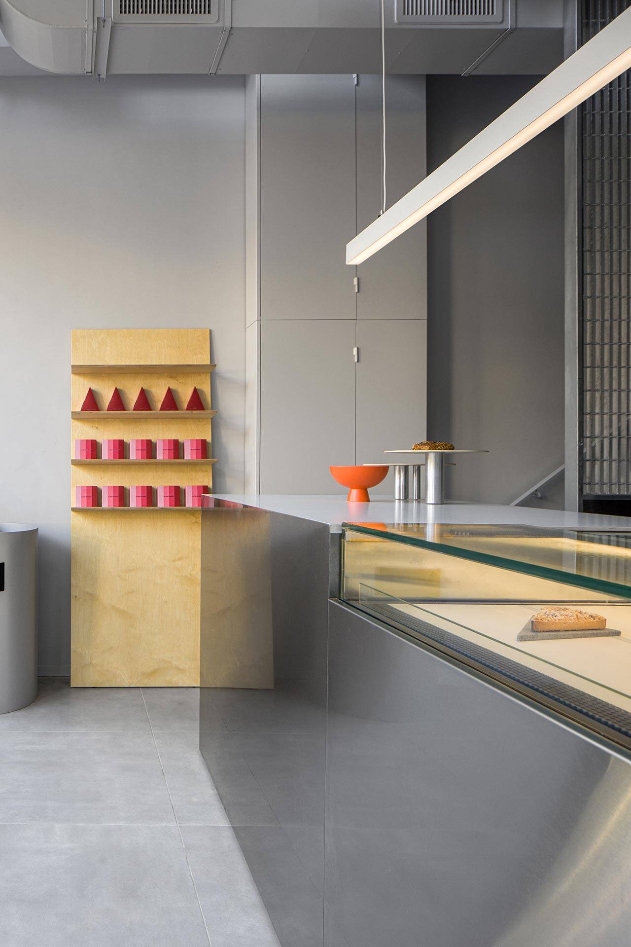 סימון: לאלון היה נכס של כ־60 מ״ר שמתחלק לשתי קומות ברחוב שינקין בתל אביב. הוא רצה לפתוח חנות נוספת אבל עם זאת היה לנו חשוב לשמר את החוויה היחודית שמזוהה עם החללים הקודמים שלו ולא להפוך את שמו ל״רשת״. אז מדובר בחנות פטיסרי בקנה מידה יחסית קטן עם תפריט שבחלקו ייחודי למקום שמתחלק בשני מפלסים: מפלס הקרקע המטבח המרכזי, איזור תצוגה וישיבה של כ־35 מ״ר; וקומה עליונה המכילה את המחסן, מטבח ההכנות והשירותים