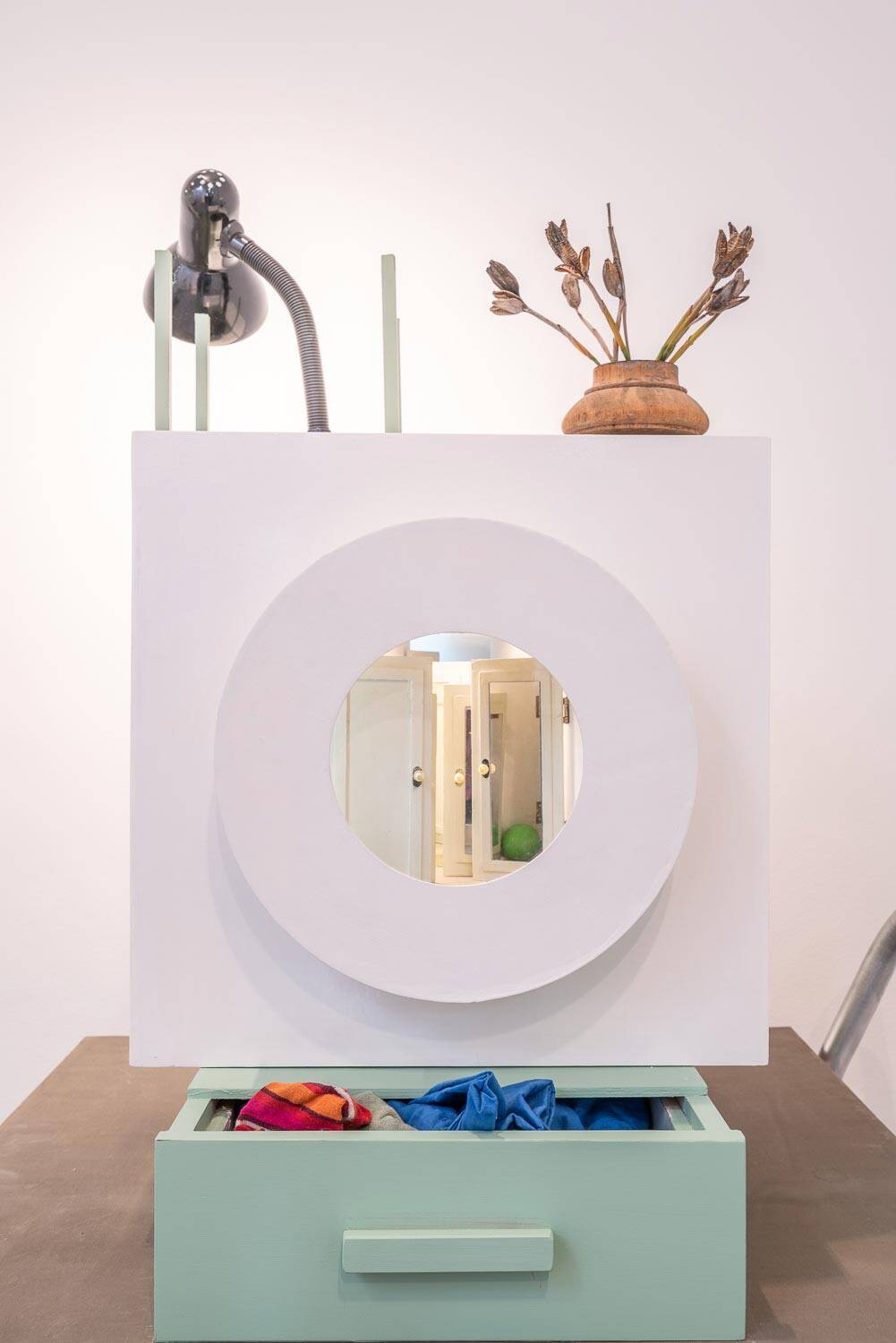 מסלול התנועה בגלריה משנה את מה שרואים ואני מקווה שהוא מייצר הפתעות. בדרך מהכניסה ועד סוף הגלריה רואים דברים שונים מאלה שרואים כשנעים בכיוון ההפוך. בסופו של דבר, זווית הראיה שלנו, נקודת המבט שלנו והעמדה שלנו, משנה את איך שאנחנו רואים דברים גם בעולם שמחוץ לגלריה. לעניין ארץ המראה שהזכרת – אכן. המראות גם נמצאות פיזית בחלל התערוכה