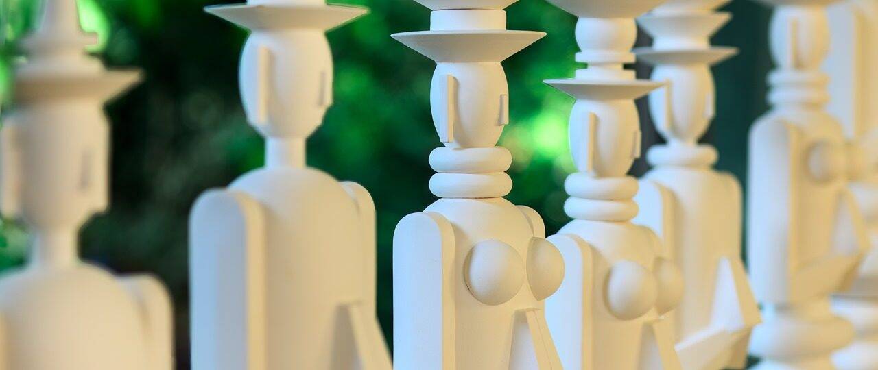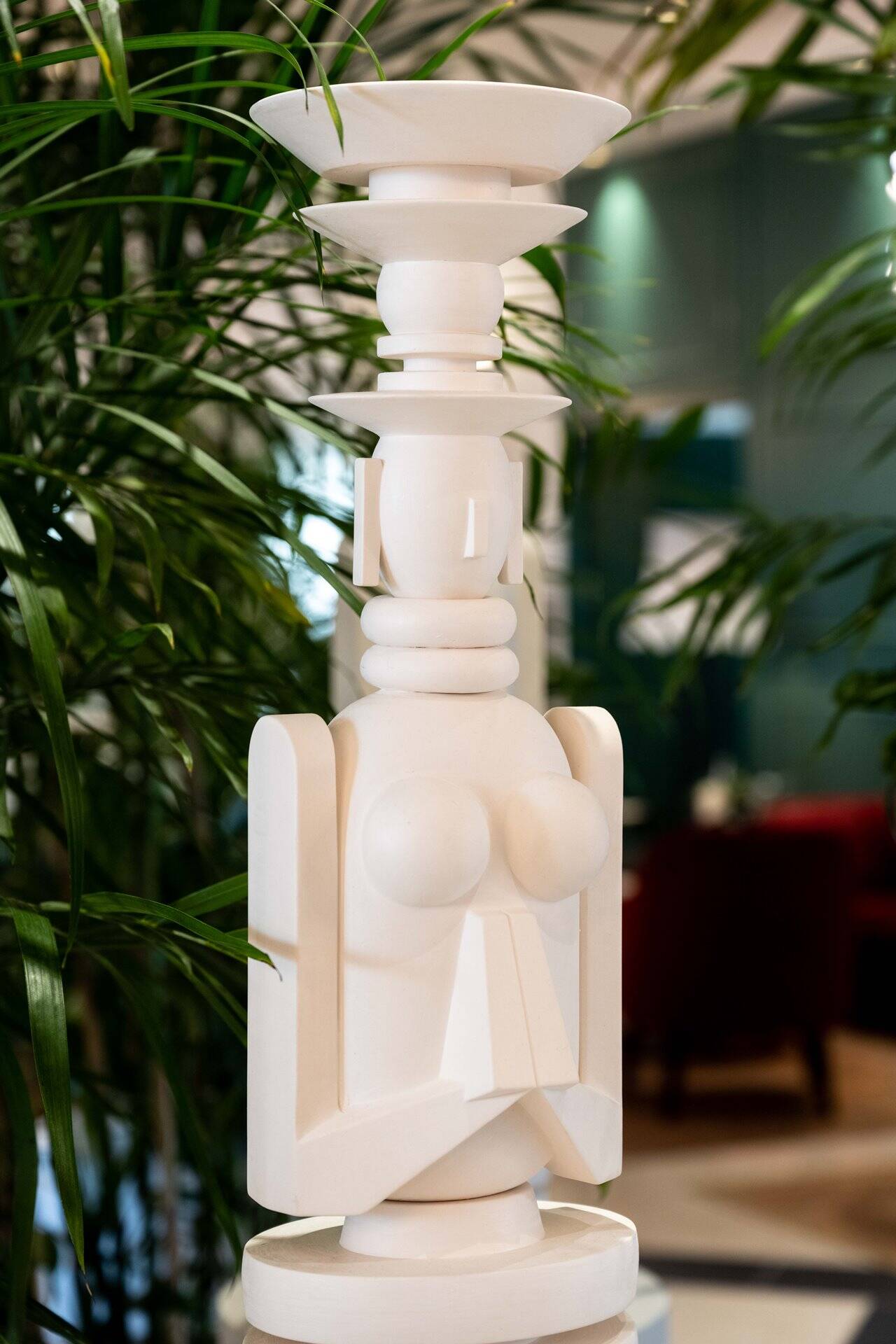 ״אני מקפידה להישאר בתוך הקווי מתאר והשפה שלי, וזה מתבטא גם בפיסול של הקולקציה החדשה, שאציג בצבע טרי: צורות גיאומטריות ראשוניות שנפגשות כאילו באקראי, משתלבות על ציר ורטיקלי ויוצרות טוטמים פיגורטיביים ואבסטרקטיים, באינספור קומבינציות ייחודיות. אין שניים זהים והם כולם משדרים את אותה מהות של שקט פנימי, סריניטי״.