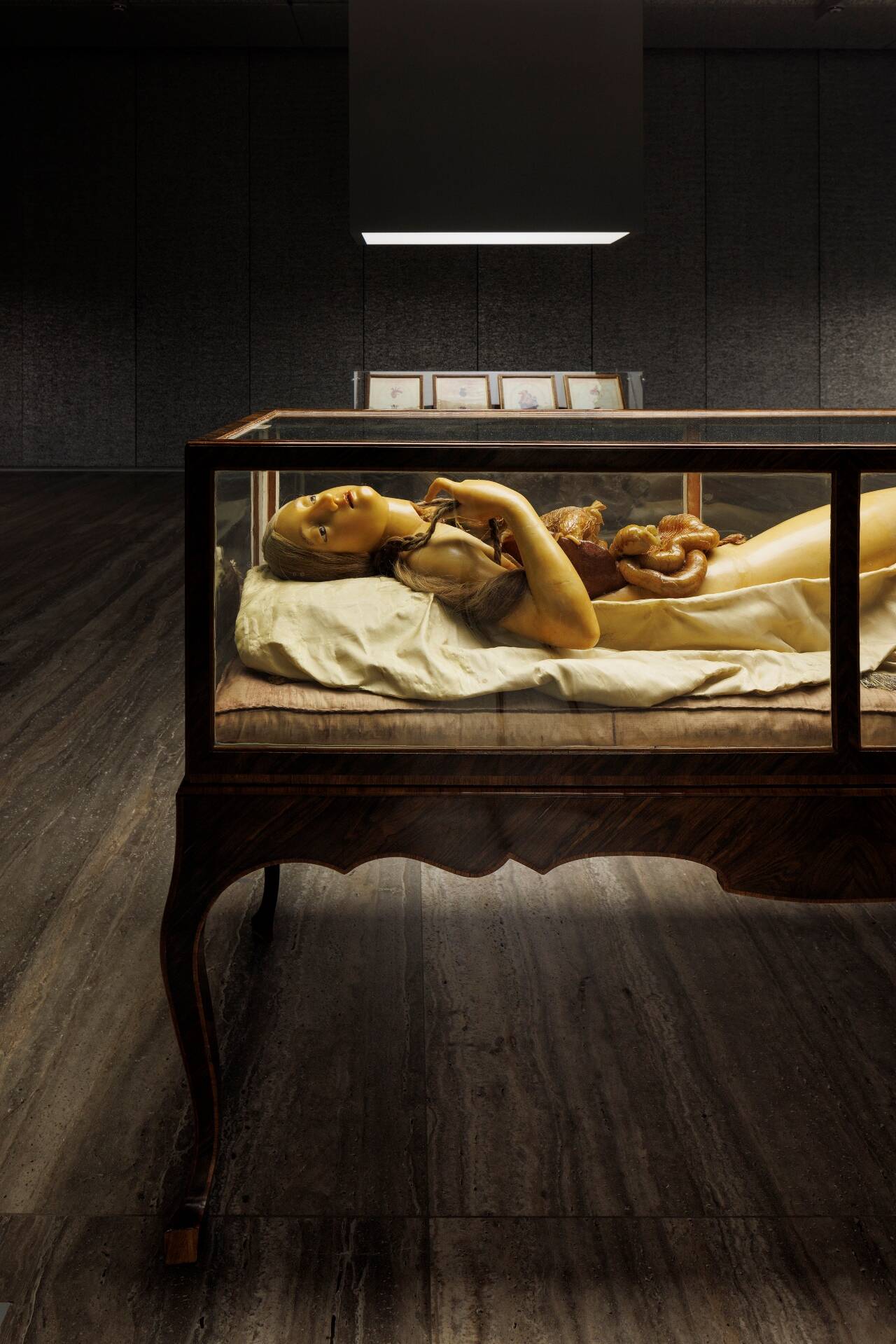 בקומה העליונה של אולם התערוכה מוצגים ארבעה מהמודלים העתיקים של גוף נשי, עשויים שעווה, ובכל אחד מהם נחשפים ומוצגים איברים שונים. ביניהם נמצאת ״ונוס״, מודל של גוף אישה עם שרשרת פנינים, שאיבריה ניתנים לפירוק והרכבה. לתצוגה הפסבדו־מדעית תורמים עוד תשעה מודלי חתך של אברי הרבייה הנשיים, ו־72 רישומים אנטומיים מדוייקים. הישירות והריאליזם של המודלים והשרטוטים חושפים כל פרט של תוך תוכינו, ללא צורך בתיווך כמעט. ולשם כך הם נוצרו – כדי לאפשר לקהל הרחב דרך ישירה להבנה של גוף האדם.