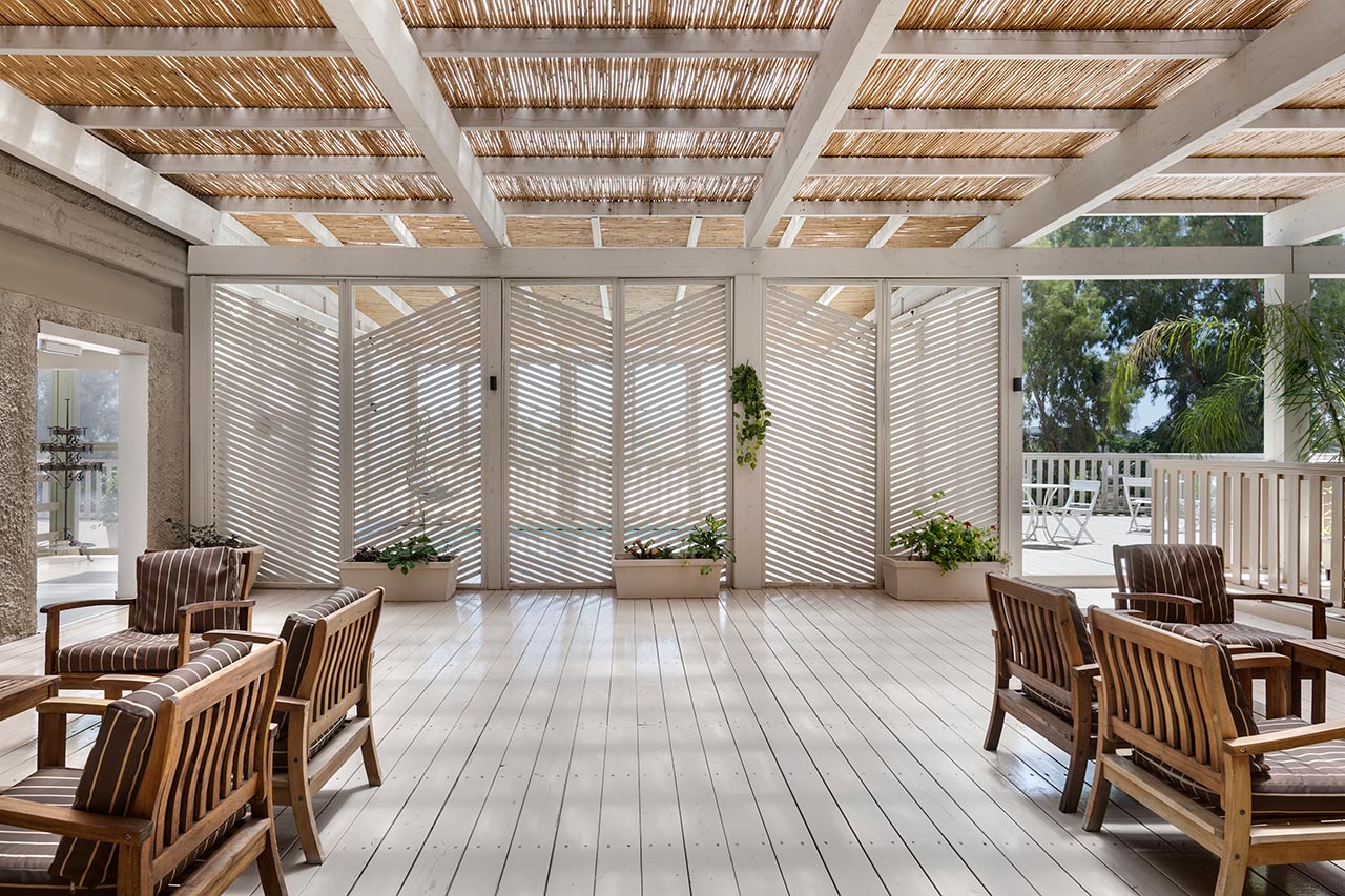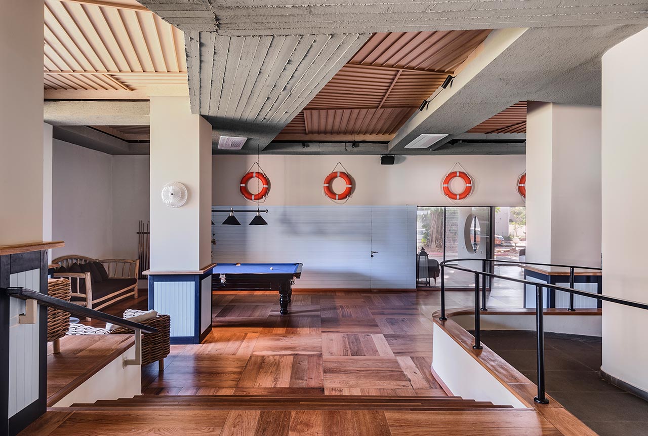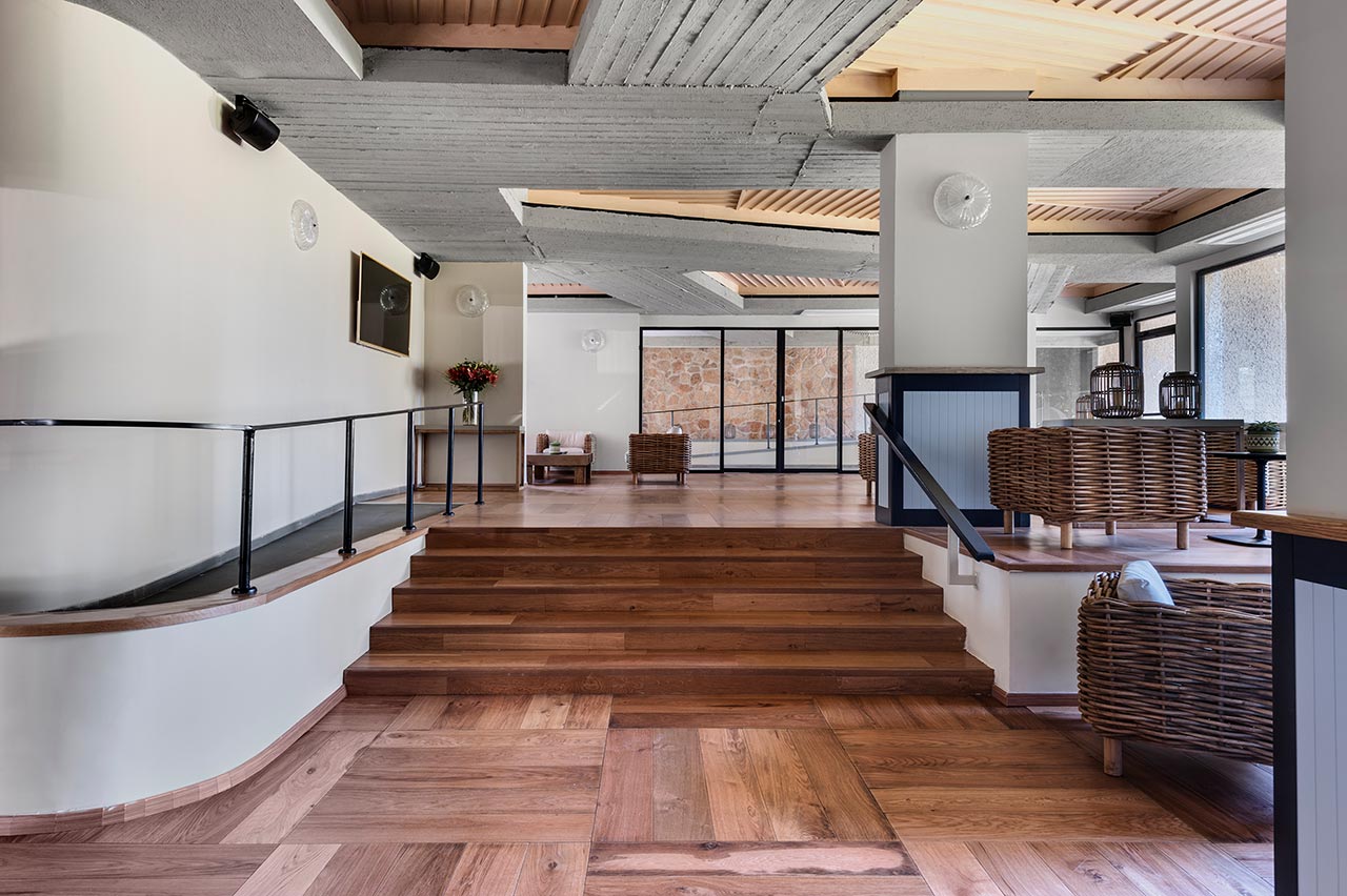 המבנים כולם עטופים צמחיה פראית המחברת בין הפנים לחוץ. האדריכל בחר שלא להוריד את הטיח הישן מקירות המלון ובמקום לבחור גמרים חדשים, מיקם על הקירות קונסטרוקציות פלדה צבועה של סולמות מוזיקה בגוון לבן. לאורך השנים מטפסת הצמחייה ומכסה לגמרי את המרפסות ויוצרת מראה טבעי, חי נושם ופורח. לצד שימור צמחייה היסטורית, מקפידים במלון על שתילות חדשות. השפה העיצובית היא Look and Feel בגווני ים אפורים כחולים וגוונים ירוקים שאת חלקם אפשר למצוא בטבע עצמו, שנמצא בכל פינה.