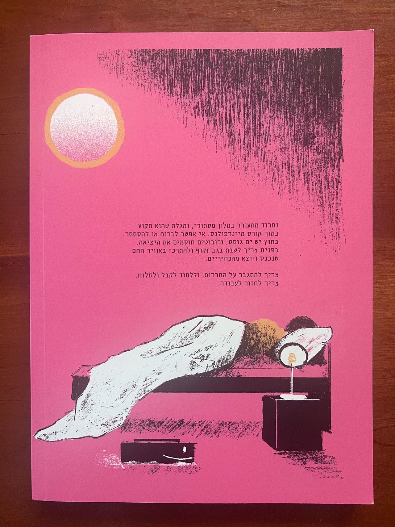 למדתי בתואר השני בתקשורת חזותית באותה תקופה, והרבה מהתואר מתעסק בביקורת של עולם הטכנולוגיה העכשווית. שאפתי לעשות יצירה שהיא מקומית, אקטואלית וביקורתית, והדברים התחברו לי לעולם של הקומיקס – סיפור מדע בדיוני שמתאר עולם שבו חברות שולחות את העובדים שלהן לטיפולים נפשיים במלון מיוחד, שתופר לכל אחד טיפול על פי אלגוריתם, ולא מאפשר בריחה עד סיום הטיפול.