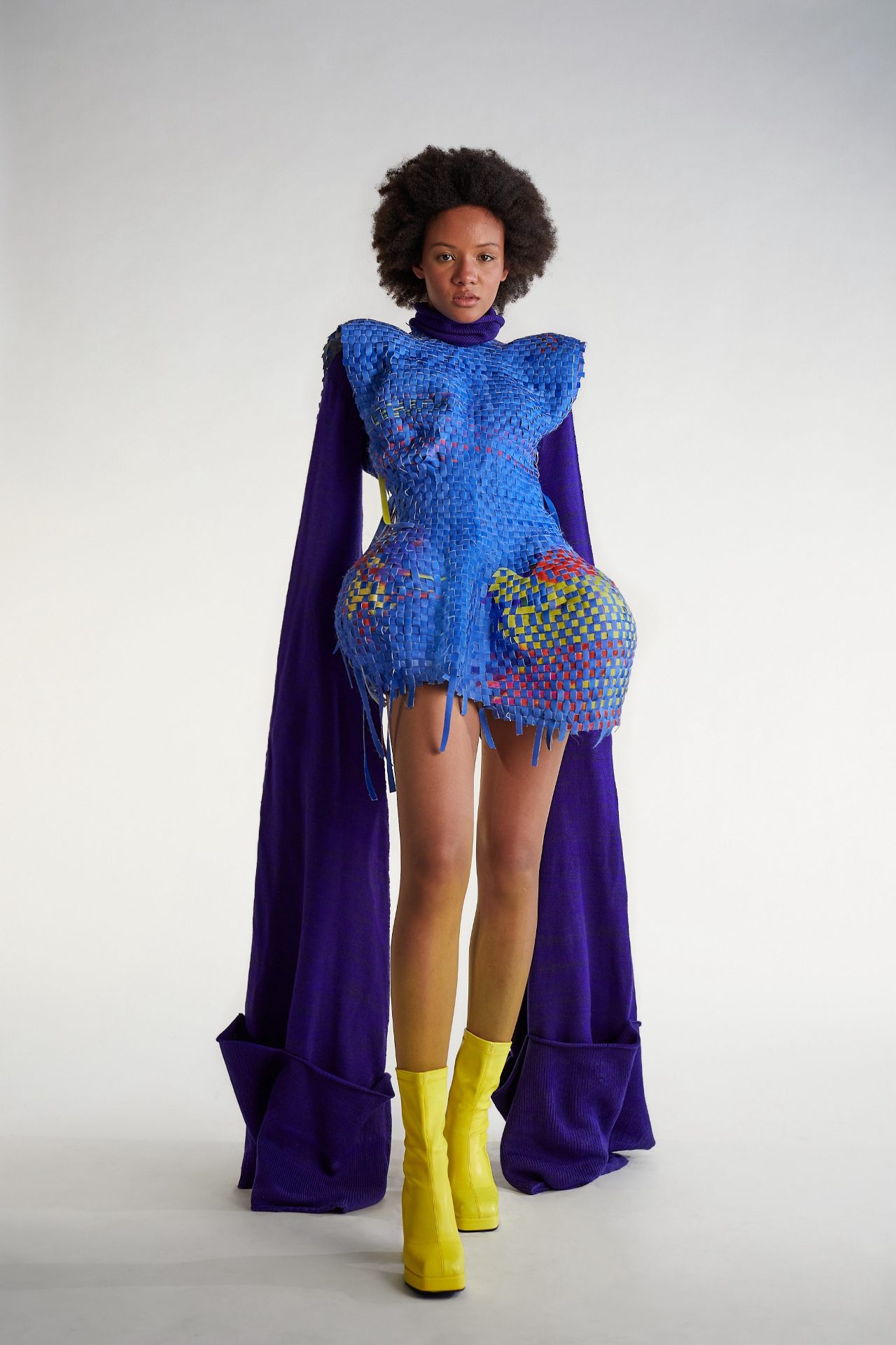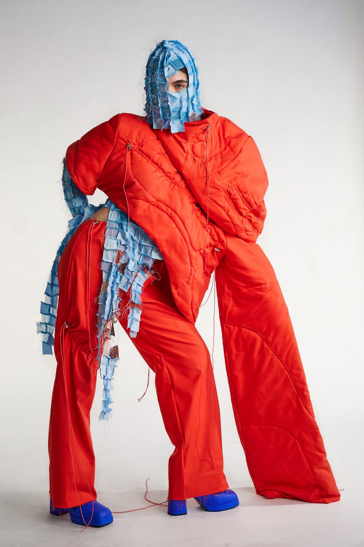 עיצבתי קולקציה של ארבע מערכות לבוש. כל דגם משלב טכניקות עבודה מגוונות המבטאות חוויה אישית של התמודדות יומיומית בין פסגות ההצלחה בעולם הווירטואלי המושלם לתהומות החרדה בחיים האישיים והאמיתיים. החומרים שבהם השתמשתי כלל בדי שיפון, אילוז׳ן, ניילון, סריגים, קנבס וגומי. יצרתי בטכניקות כמו אריגה, סריגה, סובלימציה (הדפס על בד), רקמה, חייטות וצביעת טקסטיל