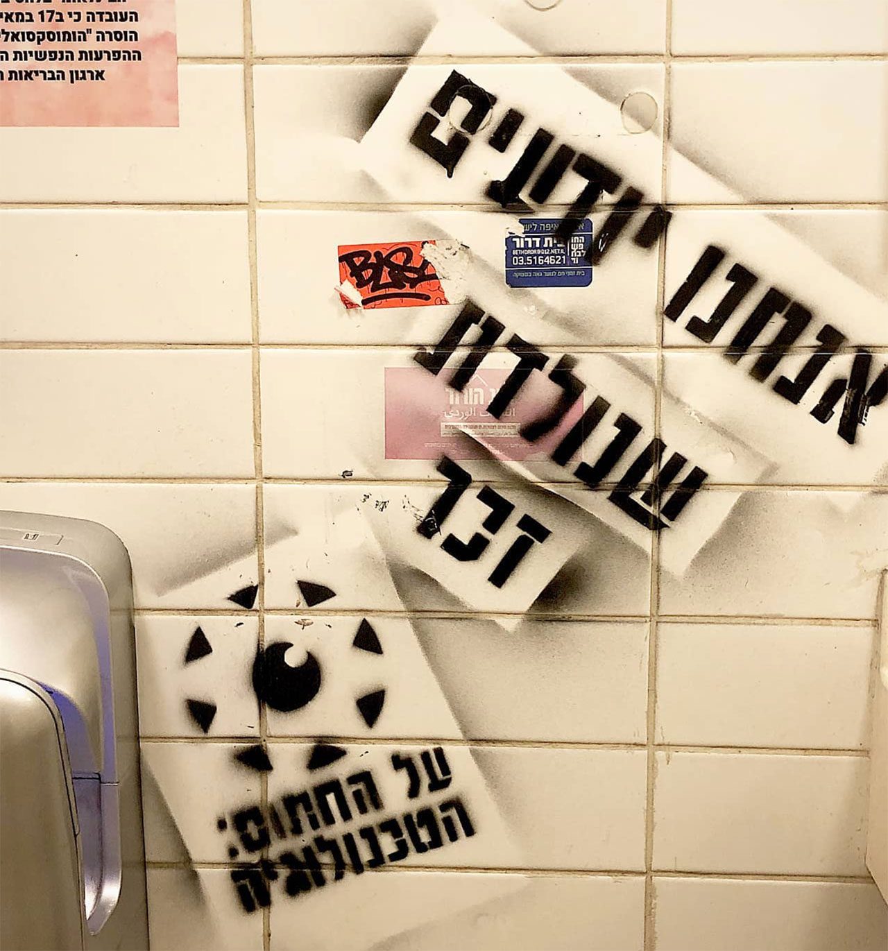 יצרתי פרויקט המשכי של כתובות גרפיטי על המבנה, ברחבה בחוץ, בתאי השירותי ובמדרגות. מטרתו הייתה העלאת מודעות ליכולות טכנולוגיה לזיהוי מצב באמצעות זיהוי הפנים. לתת לאנשים פרטיות במרחב הציבורי מול טכנולוגיה לזיהוי פנים המבססת בינה מלאכותית, לשמור על המידע הזה אצלנו ולמנוע את הנגישות שלו לטכנולוגיה. הפרויקט הציג את האמת בפנים תוך הצגת המידע האישי ביותר: המין, הנטיה המינית והמגדר.