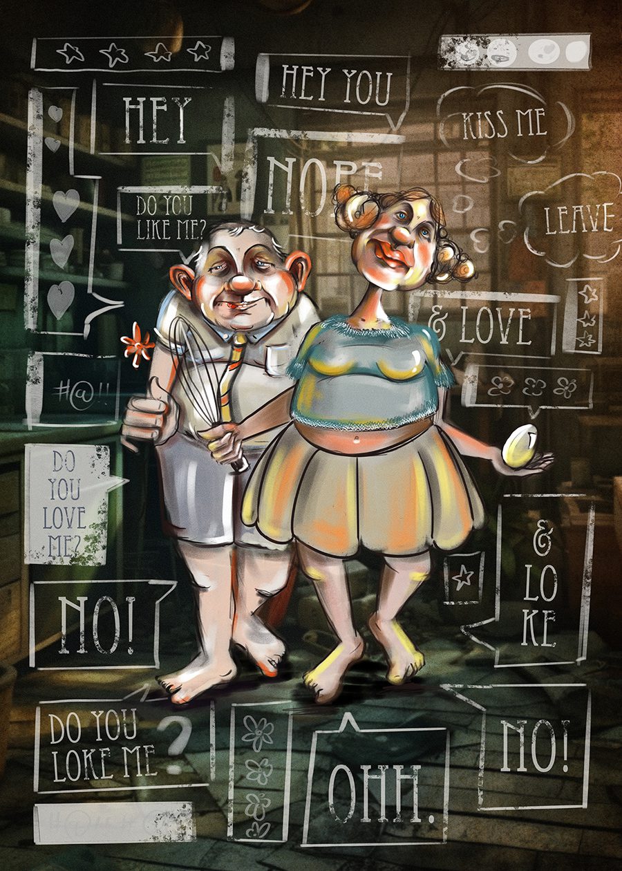 הדמויות שלי מלוות אותי מאז ומתמיד, הן מאוד מזוהות איתי, ואני מאוד מזוהה איתן 😉 הן תמיד מסביבי, תמיד משכו אותי וכך תמיד ציירתי. הן חיות להן על הנייר, והעבודה בדיגיטל חייבה אותי לדייק אותן, להיות מדויק איתן – טכנית ורעיונית. עולם הדיגיטל, מתוך היותו נתון לשינויים, דורש ממך כצייר להיות הרבה יותר טוב, לא לוותר, ולהגיע בסוף לתוצאה שאותה חיפשת