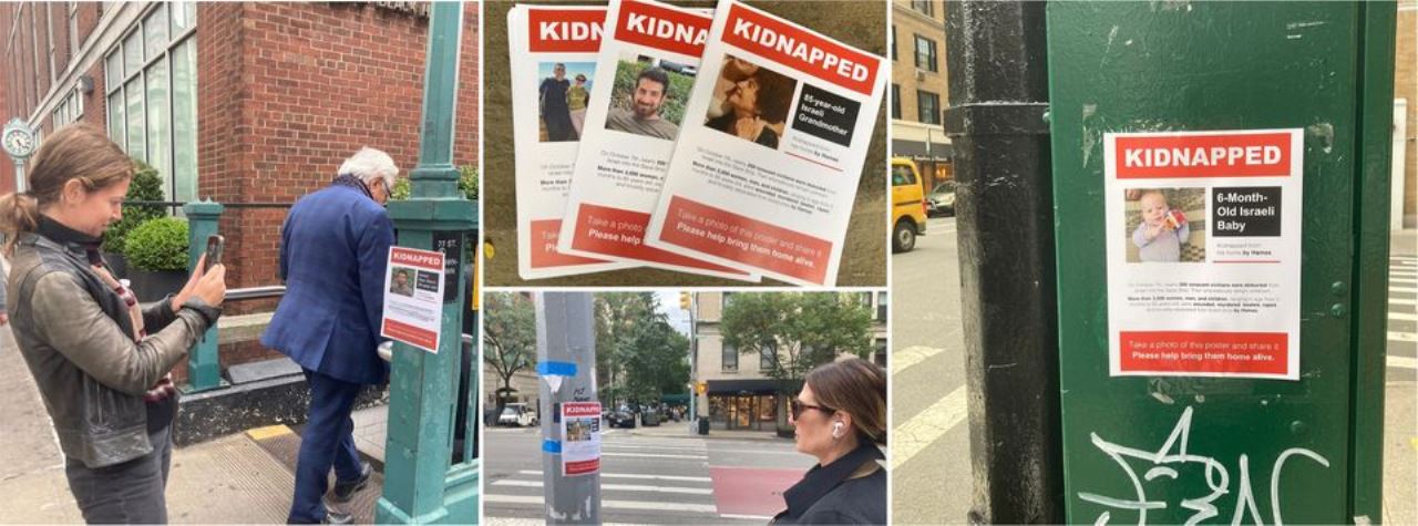 ביום שלישי כבר היו בקשר עם משפחות החטופים, במקביל לגיוס פעילים ומפיצים. הרעיון היה לייצר מודעות לנושא החטופים באמצעות כרזות שעליהן מתנוססת הכותרת Kidnapped שיודבקו במיקומים אסטרטגיים. הפורמט נראה כמו מודעות נעדרים של ילדים חטופים בארצות הברית ובמקומות רבים בעולם.