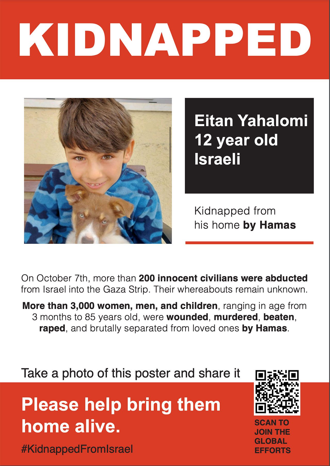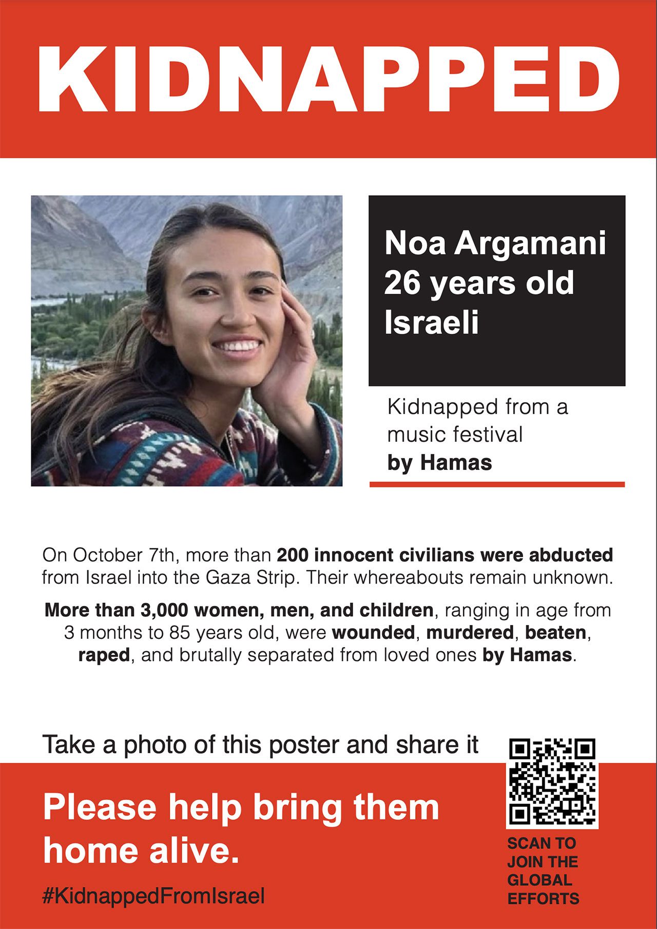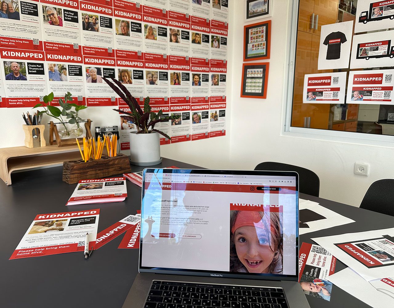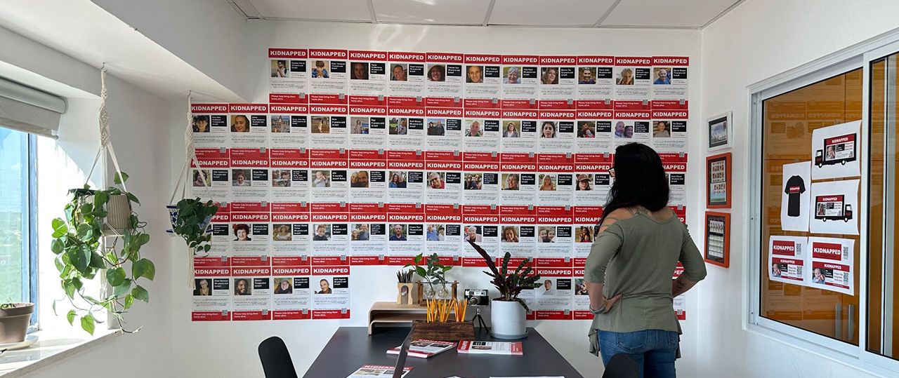 ״יצאתי לתחקיר ויזואלי איך נראות מודעות של החטופים והנעדרים בארצות הברית וההבנתי שיש להן שפה מאד מובהקת: הצבע האדום והשחור שולטים, המודעות כוללות תמונה גדולה של הנעדר, ולצד זה מופיעים עליו פרטים מינימליים. היה חשוב לנו שאנשים שילכו ברחוב יראו מודעה שתמשוך את תשומת ליבם ויתקרבו אליה. אין במודעות דגל ישראל, אין סממנים פוליטיים נוספים מעבר למסר המדויק שמדובר בנעדר חטוף״.