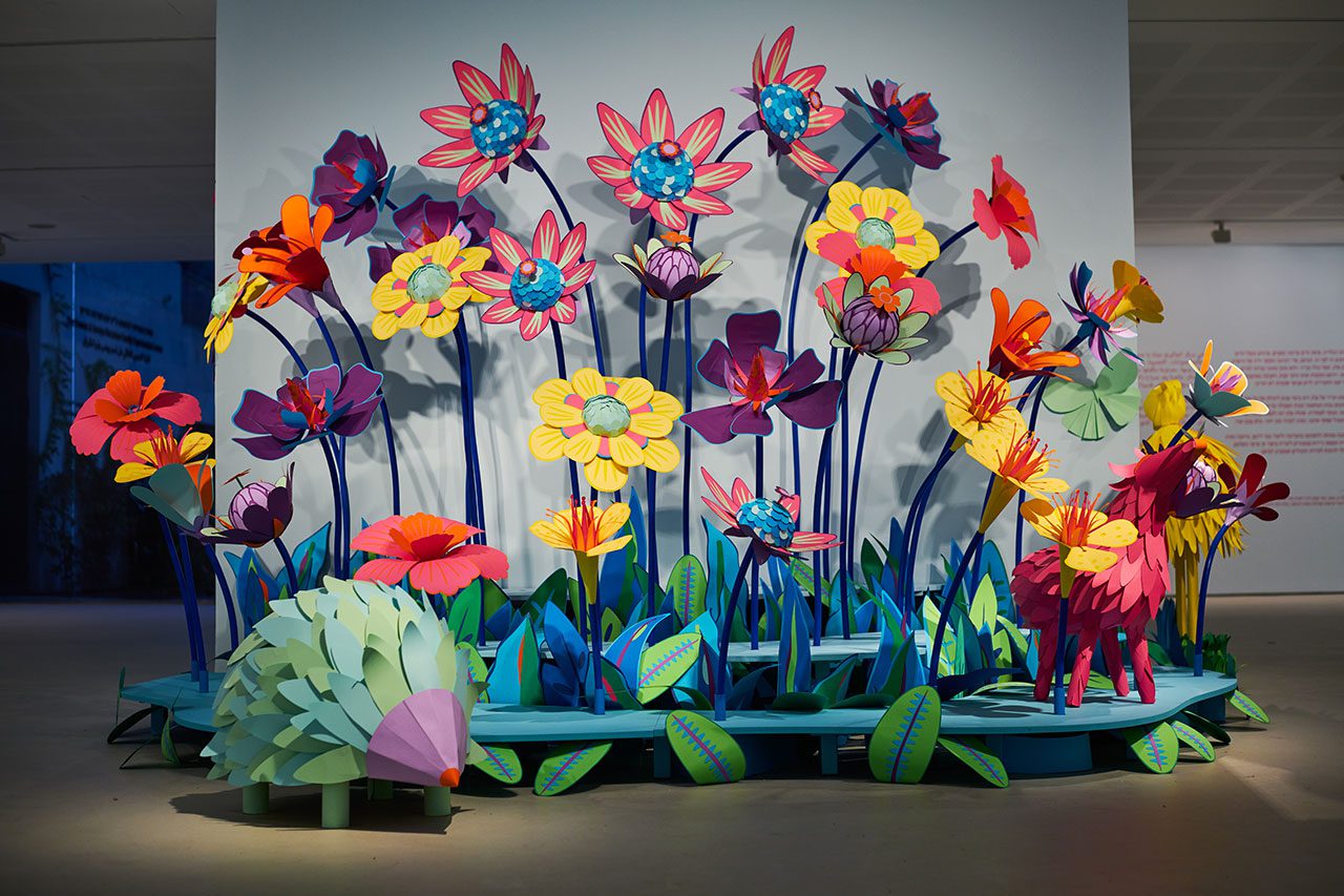 בחודש שעבר נפתחה התערוכה של פלג, ״בשמיים ראיתי קשת״, שבבסיסה מיצב המורכב מצמחים ובעלי חיים, עשוי כולו נייר, פרי דמיונה ומעשה ידיה. המיצב הוא פיסת חיים עדינה הכוללת צמחים, פרחים ובעלי חיים, ברקע של קשת שעוצבה כשובל של פרפרים, כמעין תפילה ואות לעתיד טוב יותר, מלא צבע ואור. הוא עשוי כולו מנייר, טומן בתוכו כמיהה לחיים וליופי, כתגובה לשבת ה־7.10, שבה התעוררנו לעולם שהתהפך עלינו ולרוע אנושי שכמותו לא דמיינו.