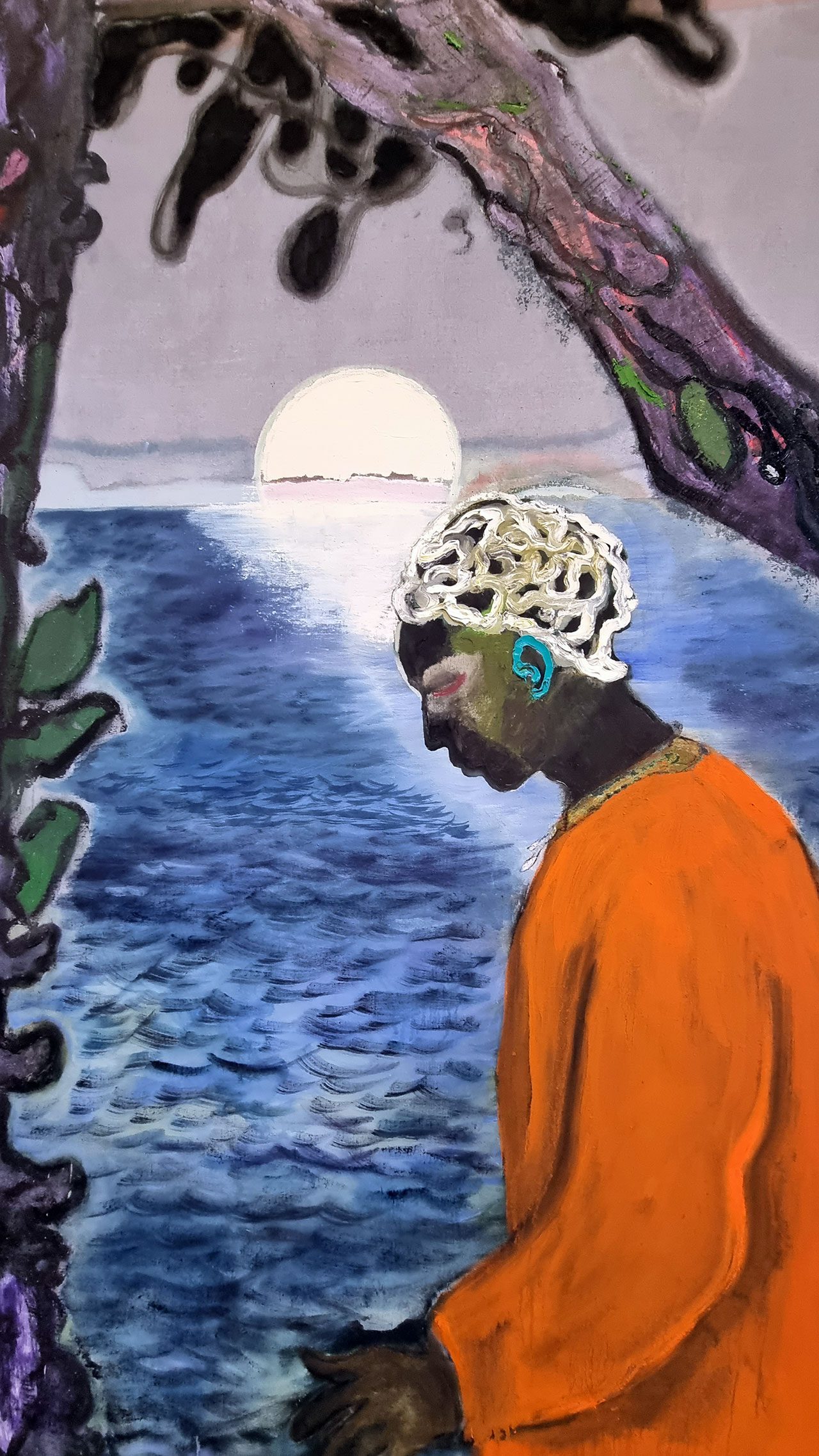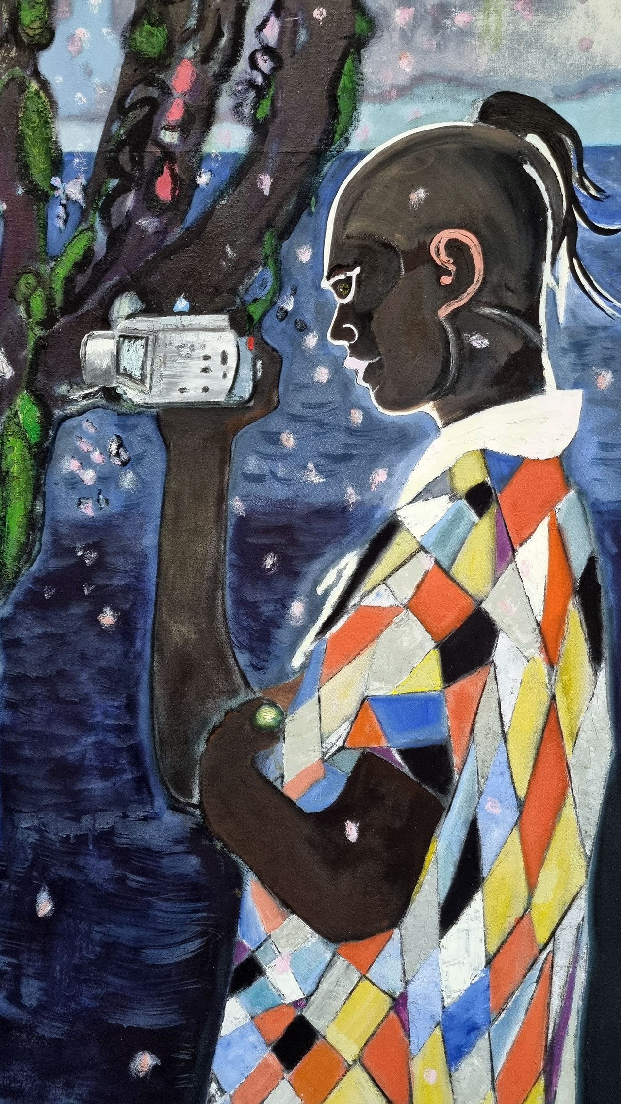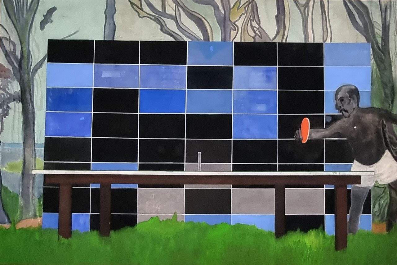 גודלן של הדמויות, אופן ההצבה בקומפוזיציה, שאב לעולם של הרהורים, אינטימיות, בדידות, שעובר דרך החופש במבע הציורי. הצבעוניות המתעתעת מוציאה אותנו מהמבט ההרגלי, הכתמים המופשטים מלאים חיים ותנועה. הקווים הפרומים, שלפעמים נראים מרושלים, סימני המחיקות, מחזקים את תחושת ההתמוססות פנימה. לצד זה, חוזרים בעבודות גרידים גאומטריים, כמו איזה רצון לקרקע, לתקוע יתדות בתוך כל הריחוף החלומי הזה; תמהיל כתב היד הדויגי.