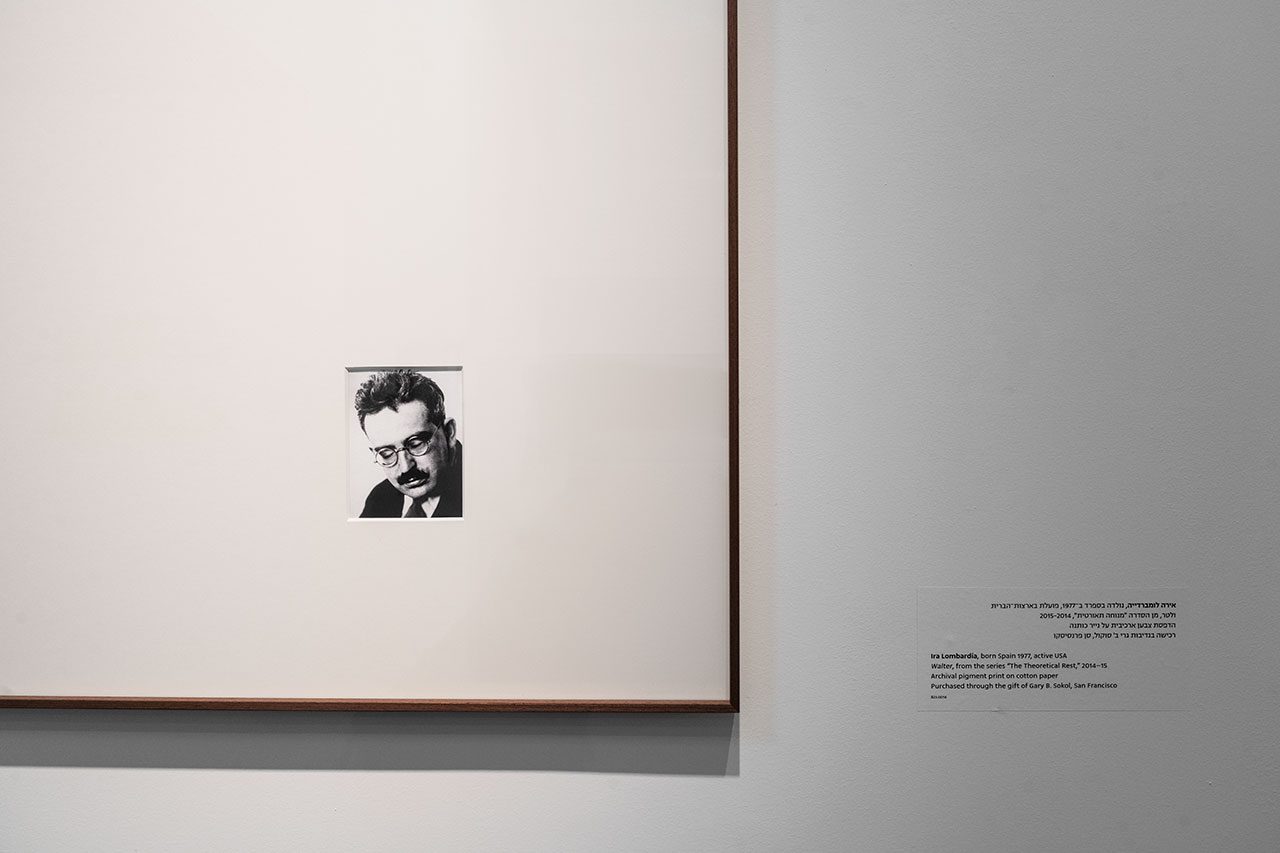 אני רוצה להתחיל דווקא מן הסוף, מאחד התצלומים שמופיע בחלק האחרון של התערוכה ״היסטוריה קטנה של הצילום: בעקבות ולטר בנימין״ במוזיאון ישראל. צילום דיוקן של וולטר בנימין, שהאמנית אירה לומברדיה (Ira Lombardia) עשתה עליו מניפולציה ו״עצמה את עיניו״. העבודה הזו, שהצטרפה לאחרונה לאוסף המוזיאון, היא חלק מסדרה שנקראת ״מנוחה תאורטית״, סדרת מחווה של האמנית לבנימין ולהוגים אחרים (לדוגמה דרידה או פוקו), שבה הם מופיעים בצילומי הדיוקן כשעיניהם עצומות.