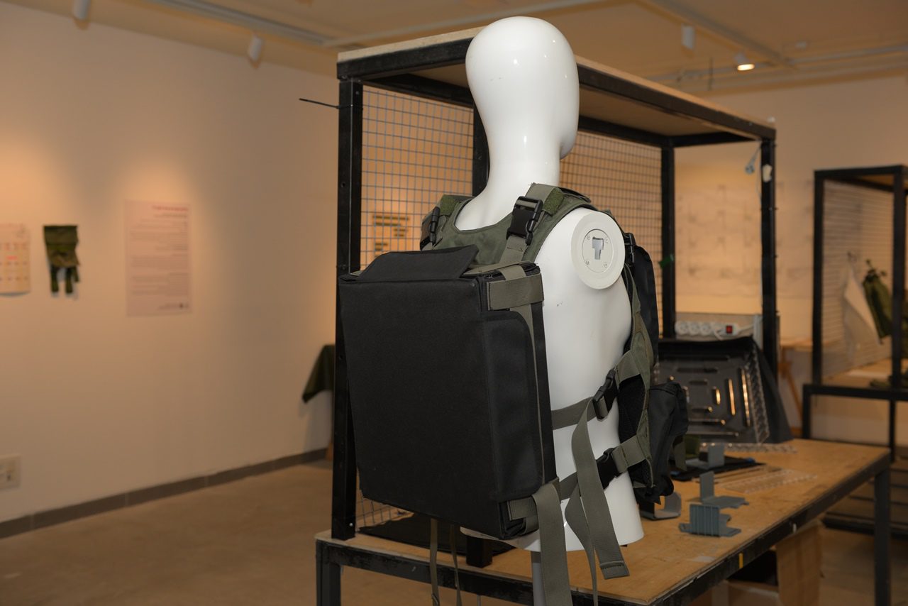 האובייקטים שמוצגים בתערוכה נוצרו במכון טכנולוגי חולון, בצלאל, שנקר ובוויצו חיפה, וביניהם אפשר למצוא פריטים כמו תוספות לאפודים, פאוצ׳ים ותיקים לנשיאת ציוד מסוגים שונים – מרימון ועד רחפן. במקביל מוצגות יוזמות אזרחיות דוגמת חיפוי לאלונקה להעברת פצועים שנוצר במסגרת פרויקט פלורנס של בצלאל, עבור בית החולים סורוקה בבאר שבע; תכנון וביצוע הסבה של מבנה תיירות בים המלח לבית ספר לחינוך מיוחד, או פיתוח של מנעול לדלת הממ״ד.