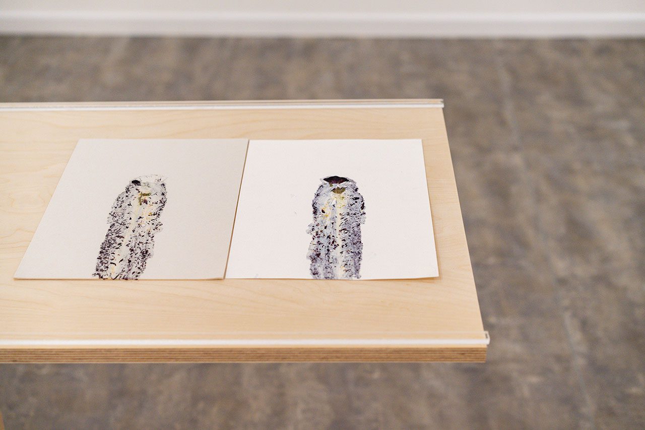 לפני שהגיעו התלמידים לסדנה לקחתי את הפרחים, הנחתי אותם בין שני דפים והעברתי אותם במכבש התחריט, תגובה ספונטנית לתחושותיי על רמיסתנו כאזרחים במדינה. הפרחים הגיבו בצורה פלאית לפעולה האלימה שלי, התפוררו ודיממו את עסיסם. התחלתי לאסוף עוד פרחים ולמעוך אותם במכבש, זה התחבר לי לעבודות קודמות שלי שעוסקות בפרחים.