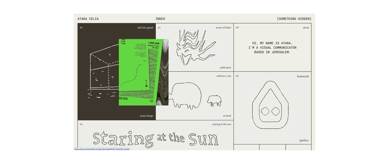 הגעתי ללימודים בלי רקע בעיצוב או איור. סביב שנים ב׳ ו־ג׳, שכללו גם סמסטר במסגרת חילופי סטודנטים בהמבורג, נחשפתי לפורמטים מדופדפים מורכבים – המון פרינט וטיפוגרפיה עם אופי מסויים שנדבק בי עד היום. אני מחבבת טיפוגרפיה חדה, מעט גותית ועל־זמנית, ואוהבת שילובים של שחור ולבן על גווניהם הרבים מאוד (ויש כאלה!). בין היתר, הבנתי שאני נהנית לשחק עם מדיומים אנלוגיים ולעשות להם דיגיטציה, וככה ליצור אימג׳ים מעניינים עם אופי יחסית חד פעמי. אני משתדלת לתת לעצמי כמה חופש שאני יכולה כשאני מתחילה לעבוד על יצירת שפה ויזואלית לפרויקט. אני מנסה, עושה מיקסים, זורקת, ובסוף לפעמים יוצאים דברים שאני מחבבת (וכשלא, אני מזכירה לעצמי שמותר לטעות ושהפרויקטים שלי בלימודים הם לא גזר דין).