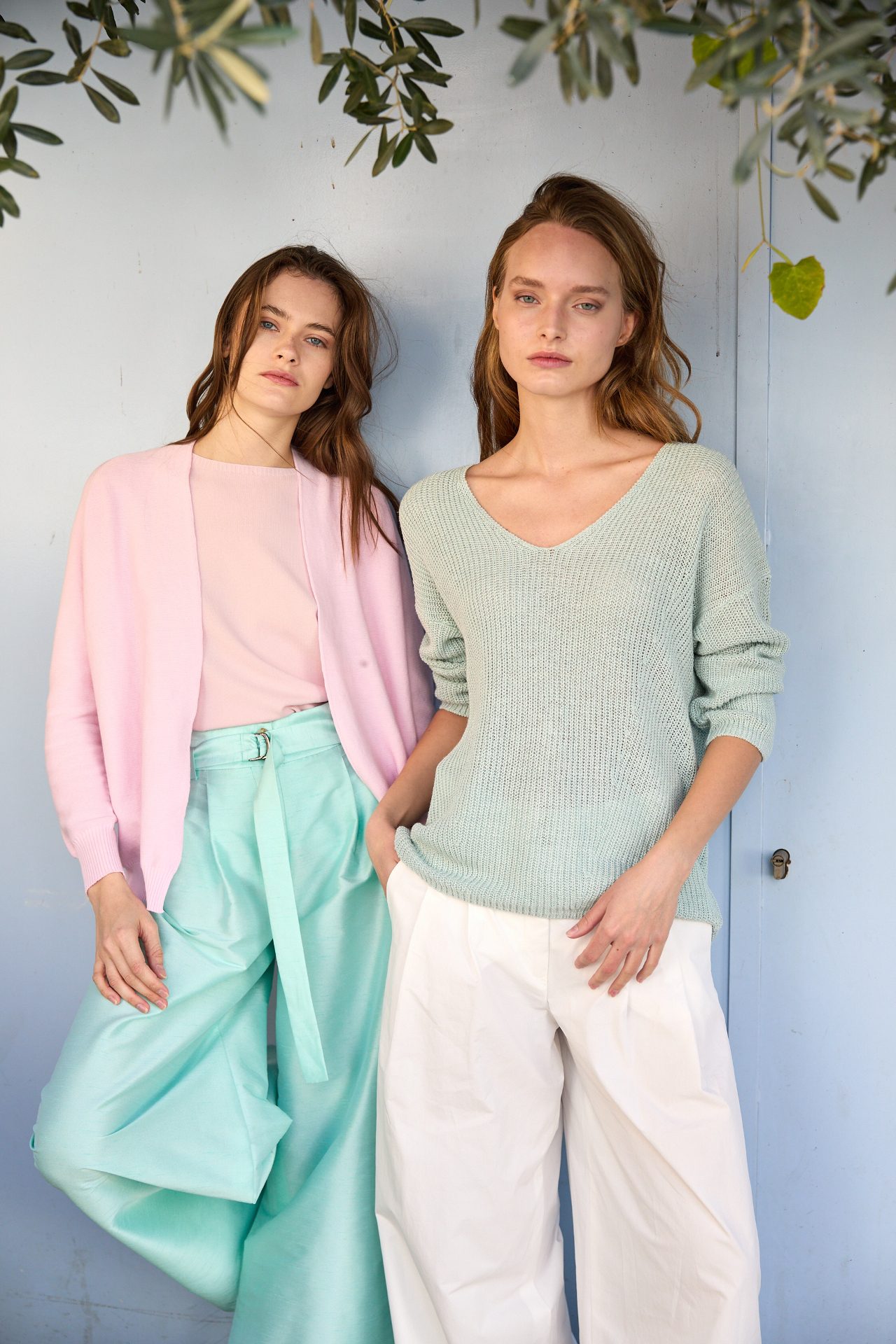צבעי הפסטל רכים ובהם צהוב סיטרין, טורקיז אקוומרין, ורוד סאקורה וכחול ארקטי, משתלבים יחד עם פלטה מונוכרומטית מעולמות הטבע, חול, מדבר, שמיים וים. הרכב הבד כולל סריגים, משי, כותנה, וויסקוזה והם נשפכים תוך הקפדה על איכויות ונוחות.