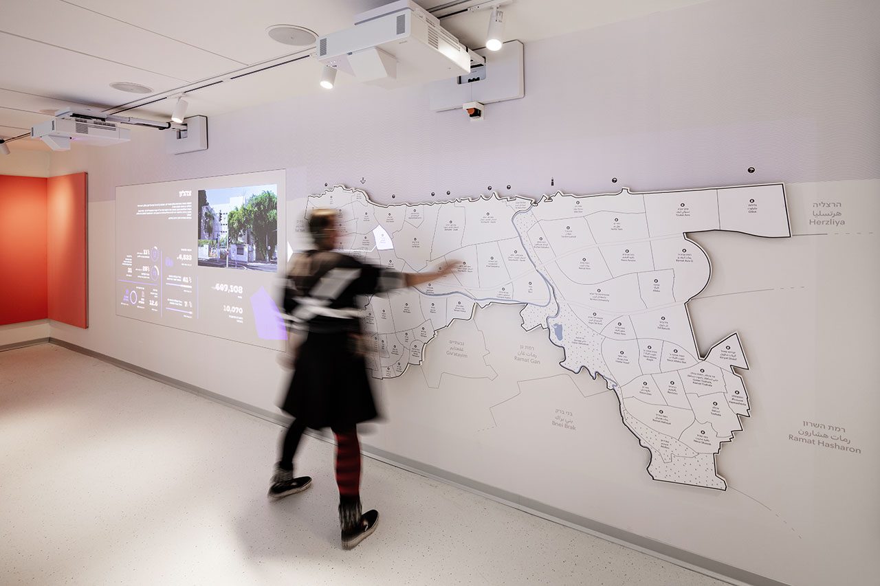 אם בתחילה, אומר רוט, המחשבה על עיצוב החלל הייתה כעל מעין ספרייה לבנה ונקייה ברוח נורדית משהו, מהר מאוד היא ירדה מהפרק. ״חלל נקי כזה לא מתאים ׳לספר׳ את תל אביב, שהיא עיר רבגונית, מאפשרת ושוקקת חיים שיש בה סוג של המולה. בתוך כך, התפיסה המרכזית של העיצוב הייתה לייצר בחלל המוזיאון גרסה של עירוב שימושים באמצעות פלטפורמות שונות, אינטראקטיביות ואחרות.