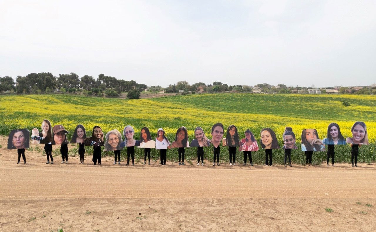 בכוחות משותפים של מטה משפחות החטופים, במימון ״אופק צילומי אוויר״, ״המרחב לצילום ואמנות״ והאמניות המשתתפות, יצרנו דיוקנאות ענק של כל אחת מהנשים שנמצאות עדיין בשבי. הגענו 19 אמניות לשדה שנמצא בבעלות רונן גיל ששיתף איתנו פעולה, והפעם הפרחים הצהובים של החרדלים חיכו לנו.
