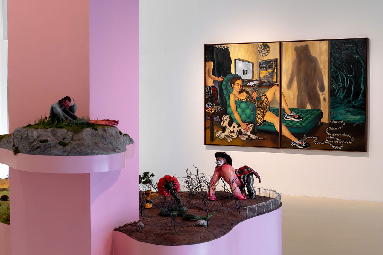 ״הנוף עצמו לקוח מטופוגרפיות שקיימות בישראל, וגם העצים שעדי יצרה באופן ידני לחלוטין הם כאלה שגדלים פה. פני השטח נוצרו בשביל הפסלים, כשהם מותאמים לפסלים עצמם – אופן ההצבה של הפסלים הוא זה שקבע איפה יהיו ממוקמות הגבעות, איפה יהיו דיונות של חול וכן הלאה. הרצון היה לייצר ציור תלת ממדי, כזה שמכל זווית שדרכה מסתכלים עליו מייצר אינסוף ציורים חדשים״.