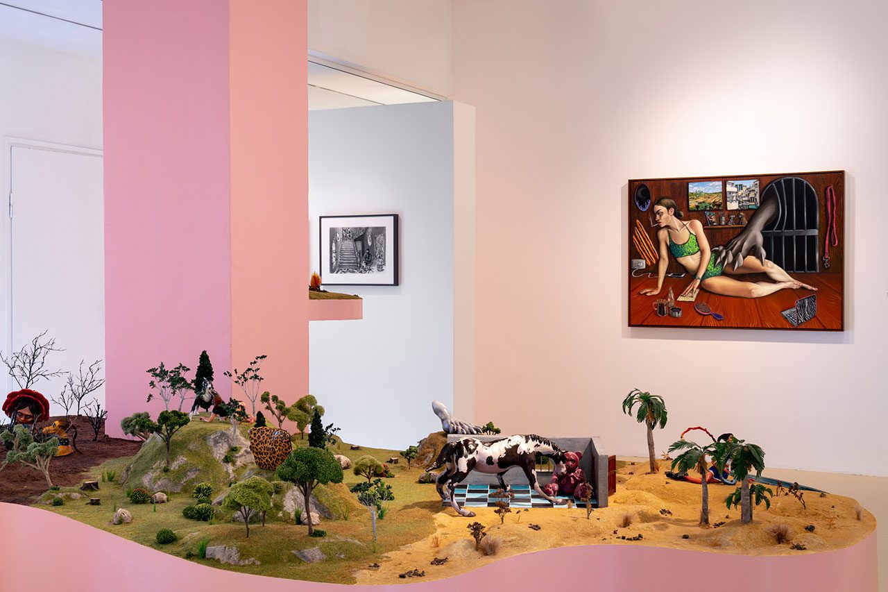 הפסלים בתערוכה מוצבים על שולחן בהשראה של שולחן מלחמה, כלי אסטרטגי של הצבא הפרוסי, שהוא גם נוף מיניאטורי של דשאים, עצים, הרים וחוף ים. ״זה הדבר היחיד בתערוכה שלא אני בניתי במו ידיי. הקרדיט הוא לקוסמת שקוראים לה עדי שמולביץ, שיצרה את הנוף על פי שרטוטים ותכנונים שלי יחד עם לני גונט. את הקונסטרוקציה העגלגלה יצר נועם בר, גם זה על פי הדמיה שהכנתי.