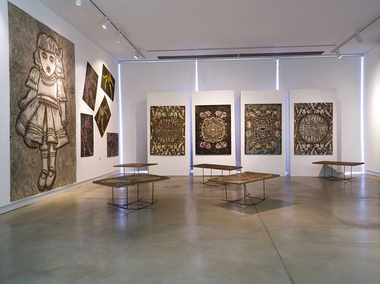 הציורים בתערוכה זו בגדלים זהים ובנויים בסימטריה מכוונת. יש בהם אלמנטים מיסטיים עם רצון לפנות לכוח עליון. בחלקם נראה שהבובה נושאת תפילין על ראשה, וחלקם נראים כפרוכת על ארון הקודש.
