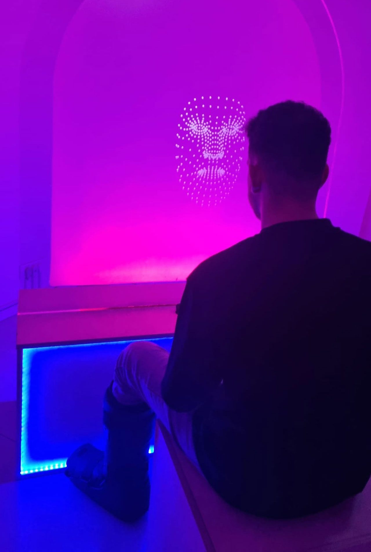 בתערוכה החלל הוא מעין תא וידוי למידות הטובות ולא לחטאים. העבודה משתמשת בחיישנים לזיהוי פנים ותנועה ובקוד גנרטיבי, סאונד, ודאטה שכל אחד מהמבקרים מזין למערכת כדי ליצור מודל AI המזהה מידה טובה. ההשתתפות שלנו במודע בתרומה למערכת מציבה אותנו במקום מרכזי כמדריך ולא כצופה מהצד וכל אחד מאיתנו הוא חלק מהשינוי שקורה.