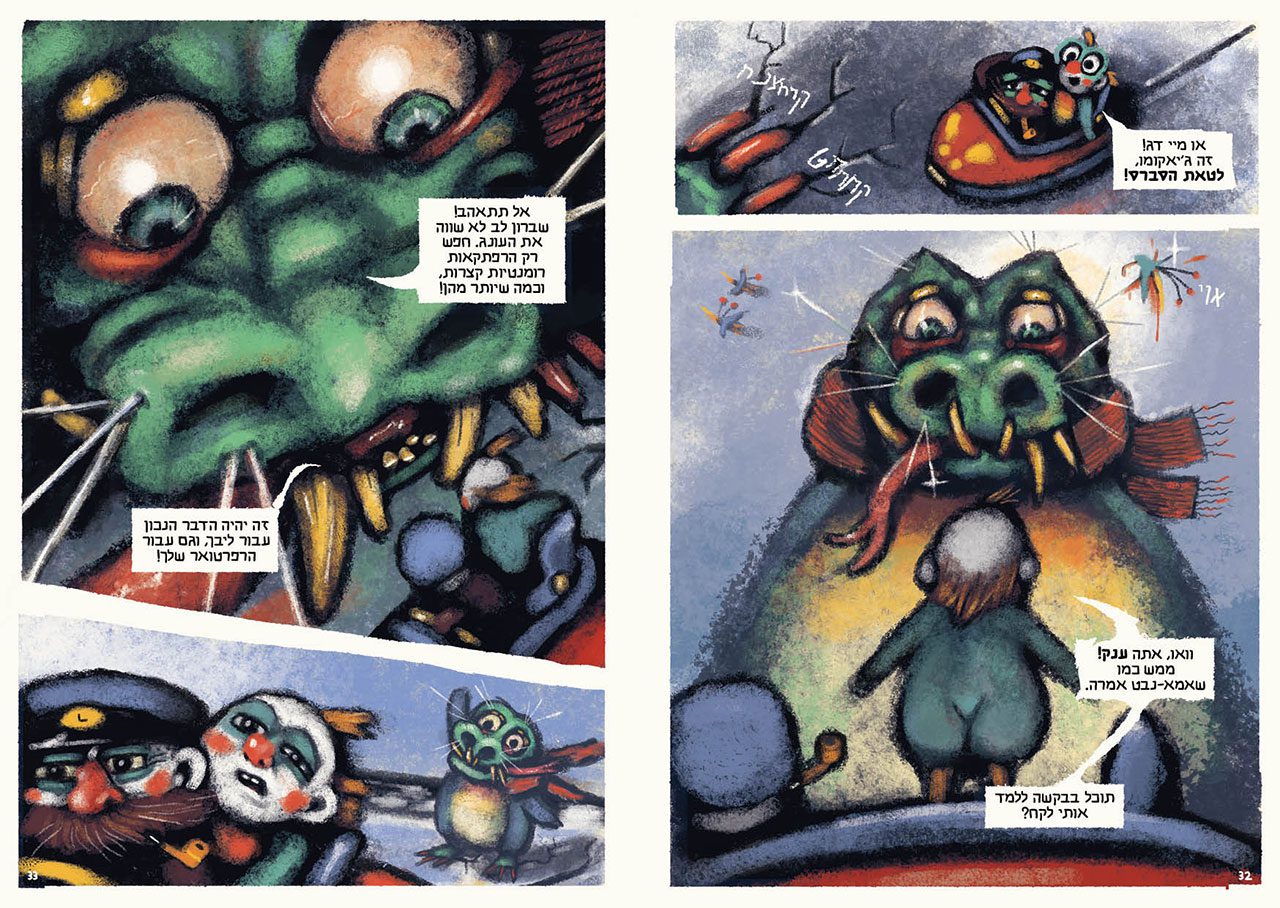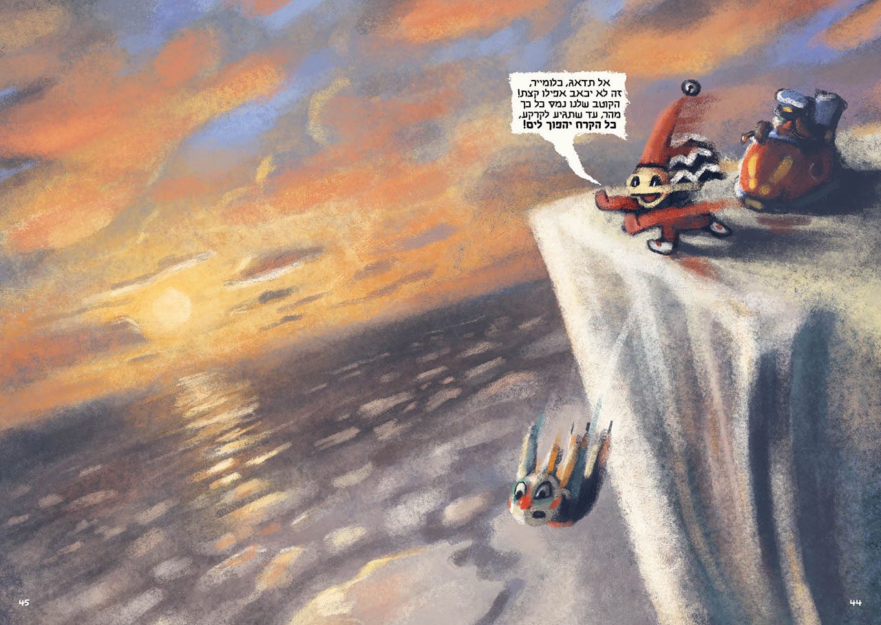 אחרי שנתיים של עבודה דיגיטלית שבהן ציירתי ציורים בתוך ציורים, קינאתי בכלומייר על החופש שלו, אז התחלתי להתפרע במציאות עם עפרונות צבעוניים. מבחינתי, את הסגנון הזה כלומייר ״מצייר״. הכנסתי אותו לספר כי זה היה נראה לי רעיון טוב לתת לכלומייר לקחת חלק בעבודת האיור.