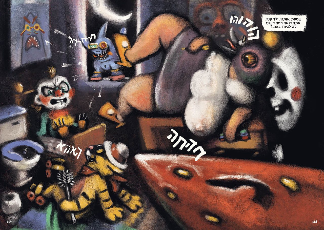 כשגדלתי צפיתי בתכניות ילדים שהפחידו אותי לחלוטין. לימים התאהבתי בהן, כי הן שימשו כגביעים על התגברות על פחד עבורי. ״החתול שמיל״, ״דו רה מי פה״, ״פלאי קלעים״ ועוד פנינים רבות של ילדות ואימה – היו השראה אדירה לעיצוב הדמויות. בספר הזה לקחתי שליטה על הדברים שמפחידים אותי ורתמתי אותם למטרה שלי.